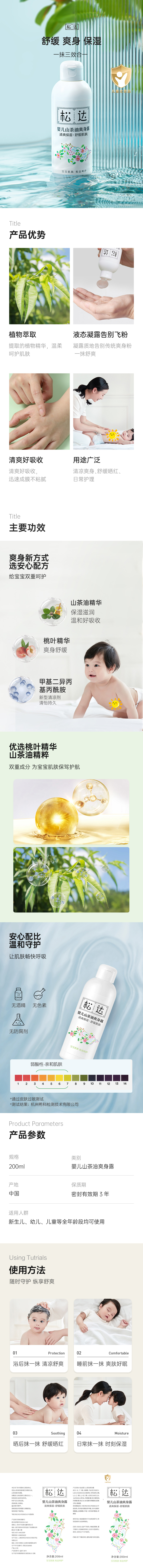 松达婴儿山茶油爽身露200ML