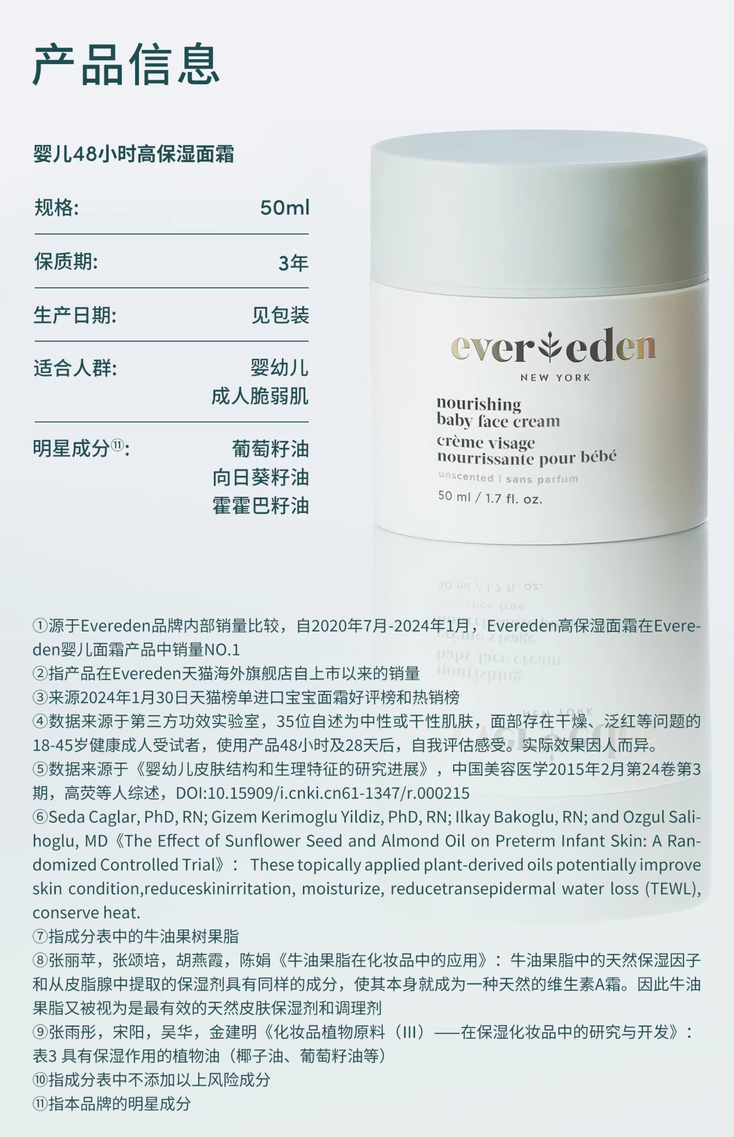 【春上新】9楼母婴生活馆 Evereden安唯伊婴儿高保湿面霜儿童保湿滋润护肤面霜50ml 活动价:259元