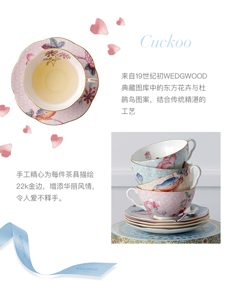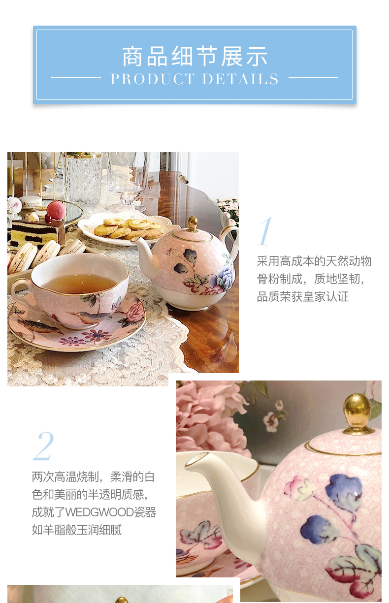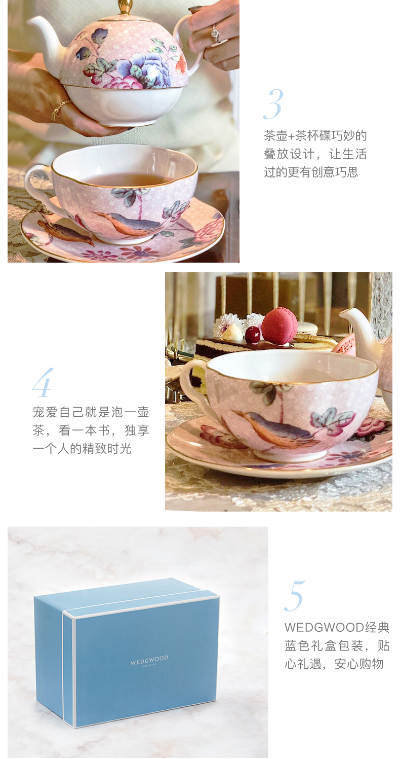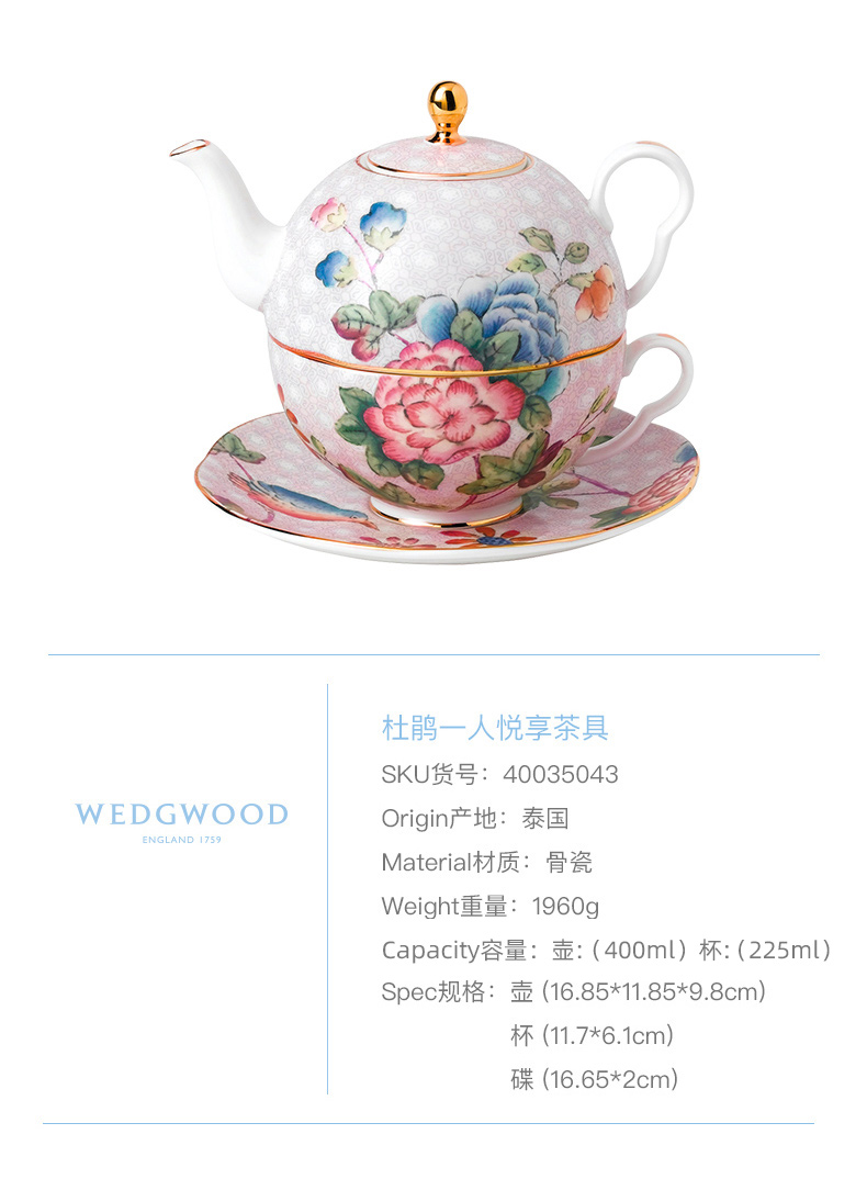 【6F】WEDGWOOD威基伍德杜鹃一人悦享茶具三件组套装骨瓷欧式子母壶茶杯碟