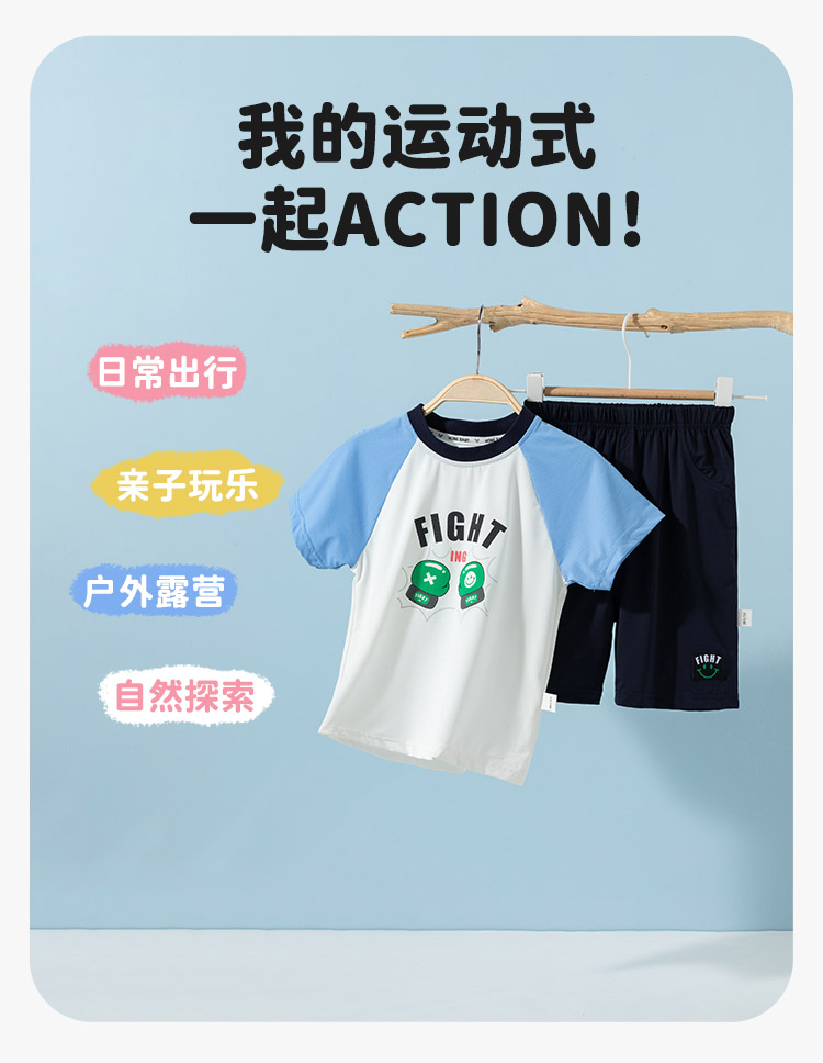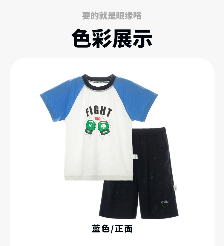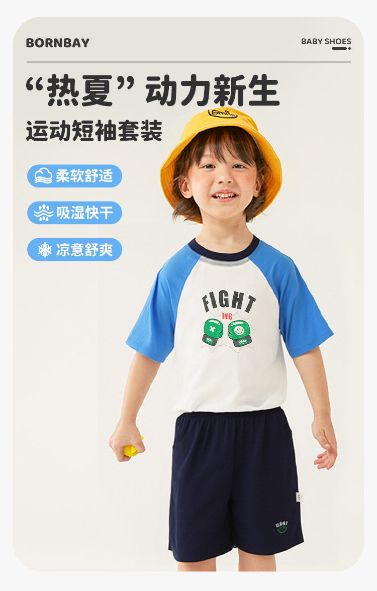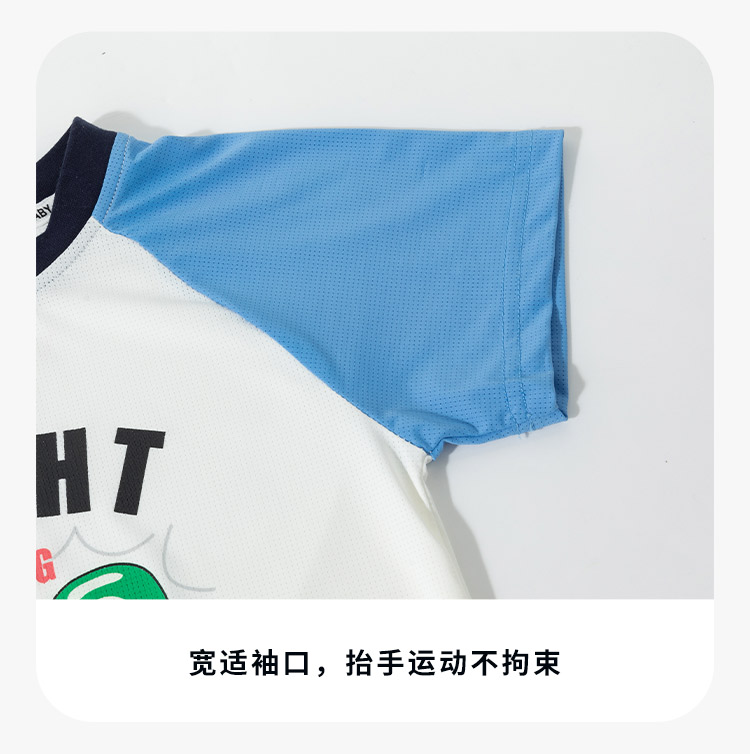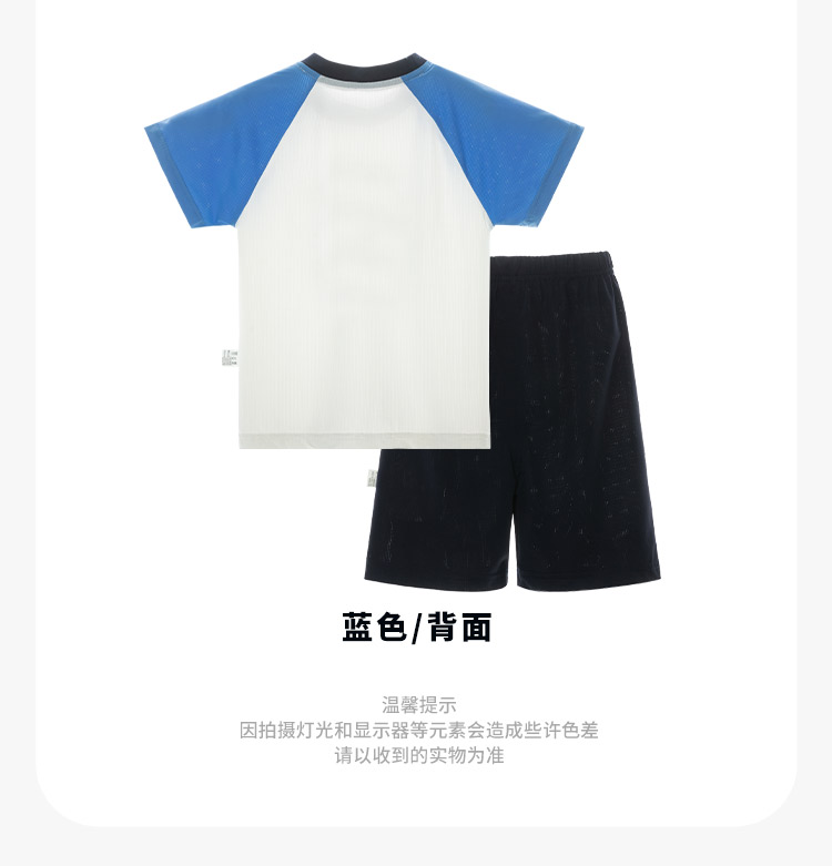 贝贝怡夏季新款男童凉感短袖短裤运动套装网眼透气T恤轻薄短裤两件套ZB2ET024