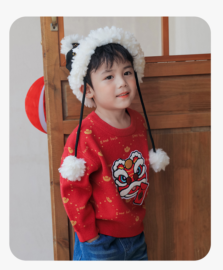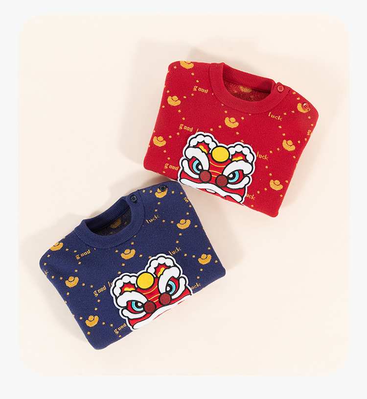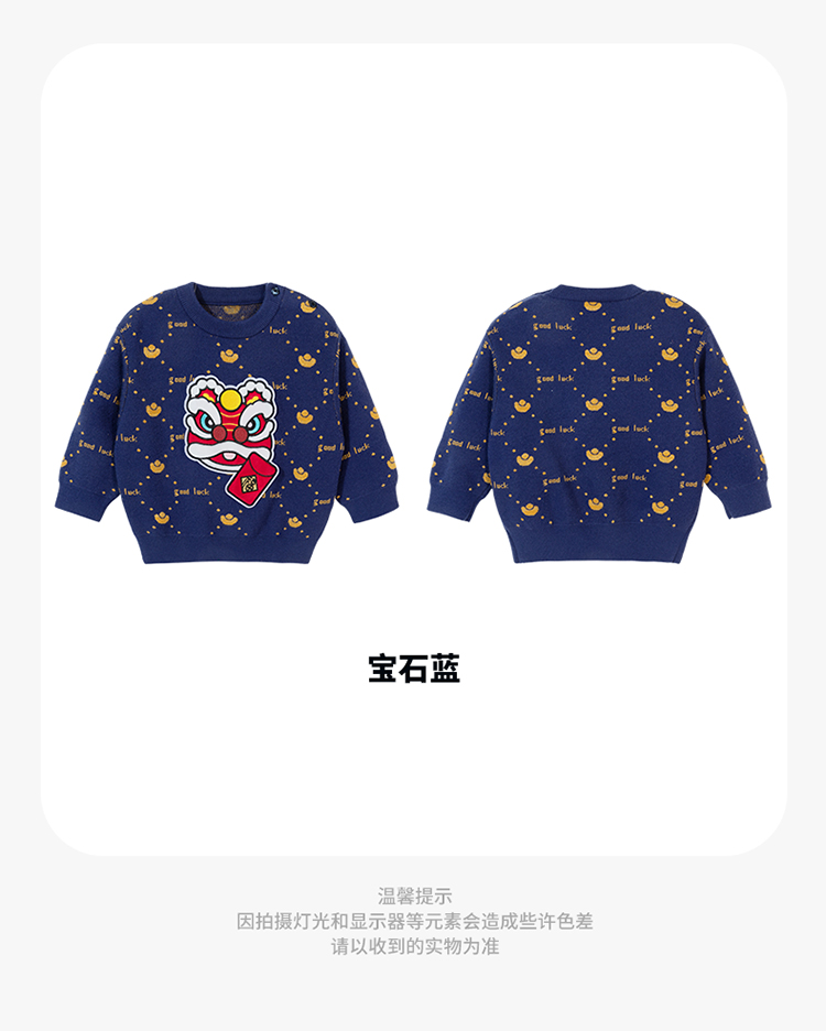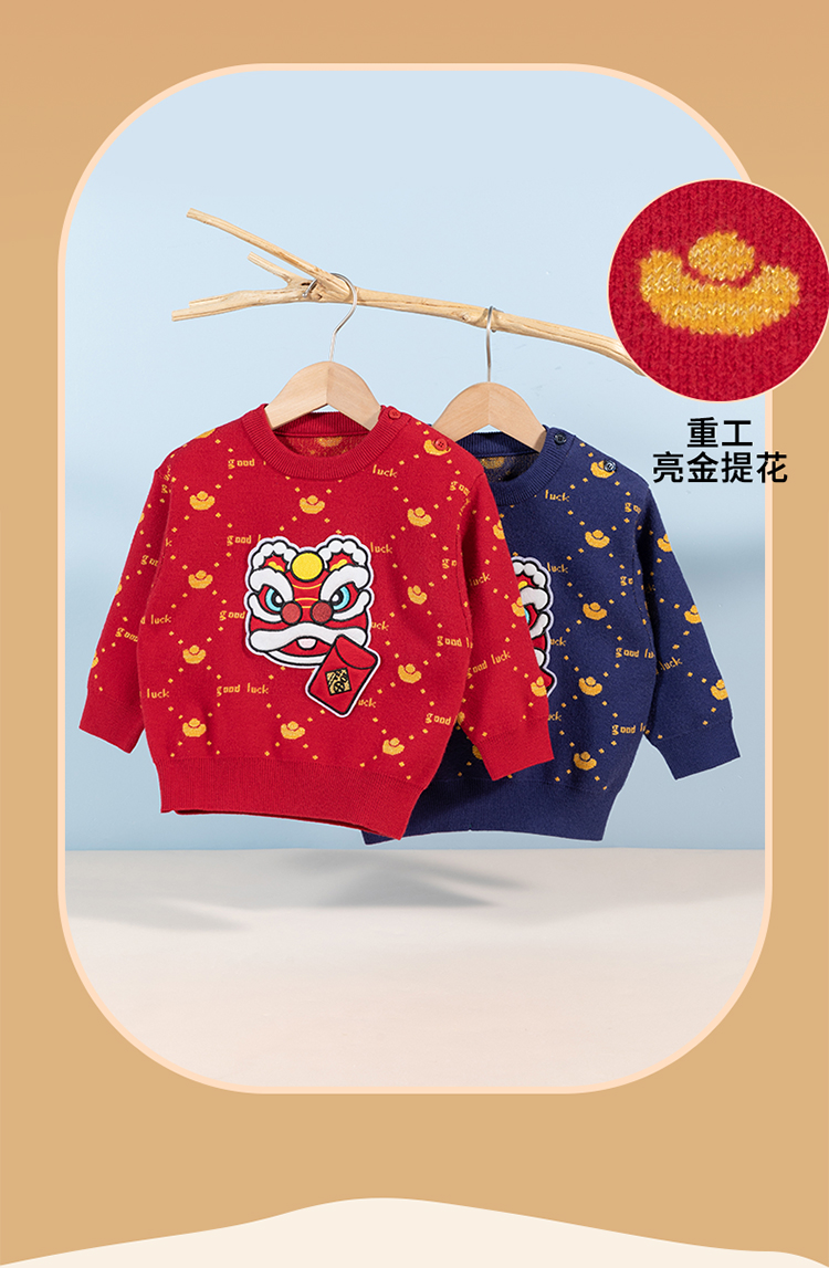 贝贝怡童装宝宝毛衣冬季婴儿新年装儿童拜年服加厚男童针织衫冬装233S3269