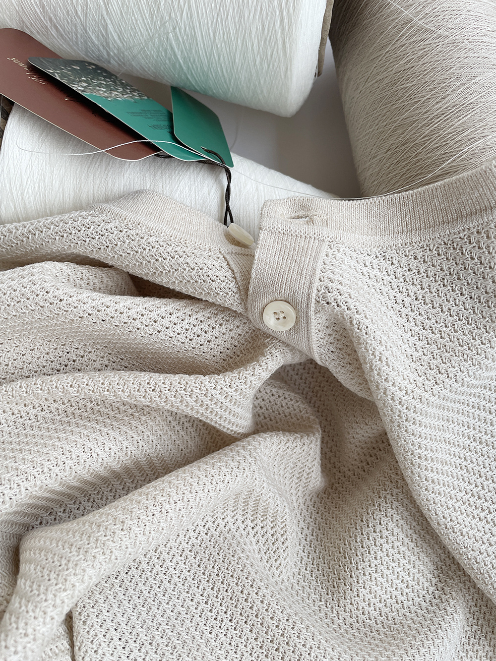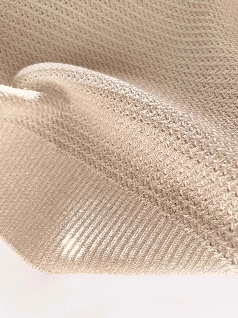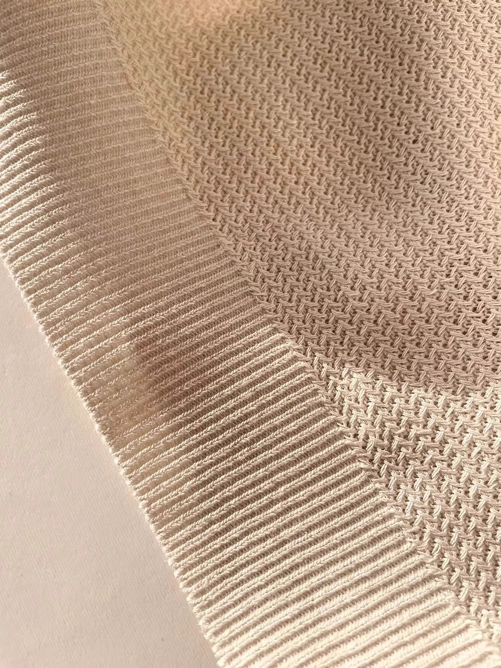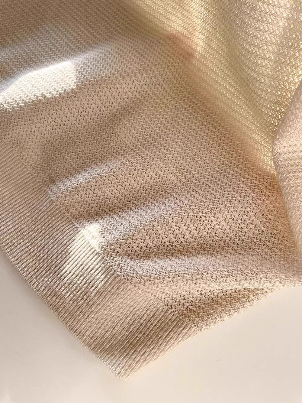 透气既有棉质面料的柔软亲肤性,又有真丝般的垂顺光泽感,还有亚麻天然的吸湿,透气性立体镂空式针织工艺,自带立体筋骨感。