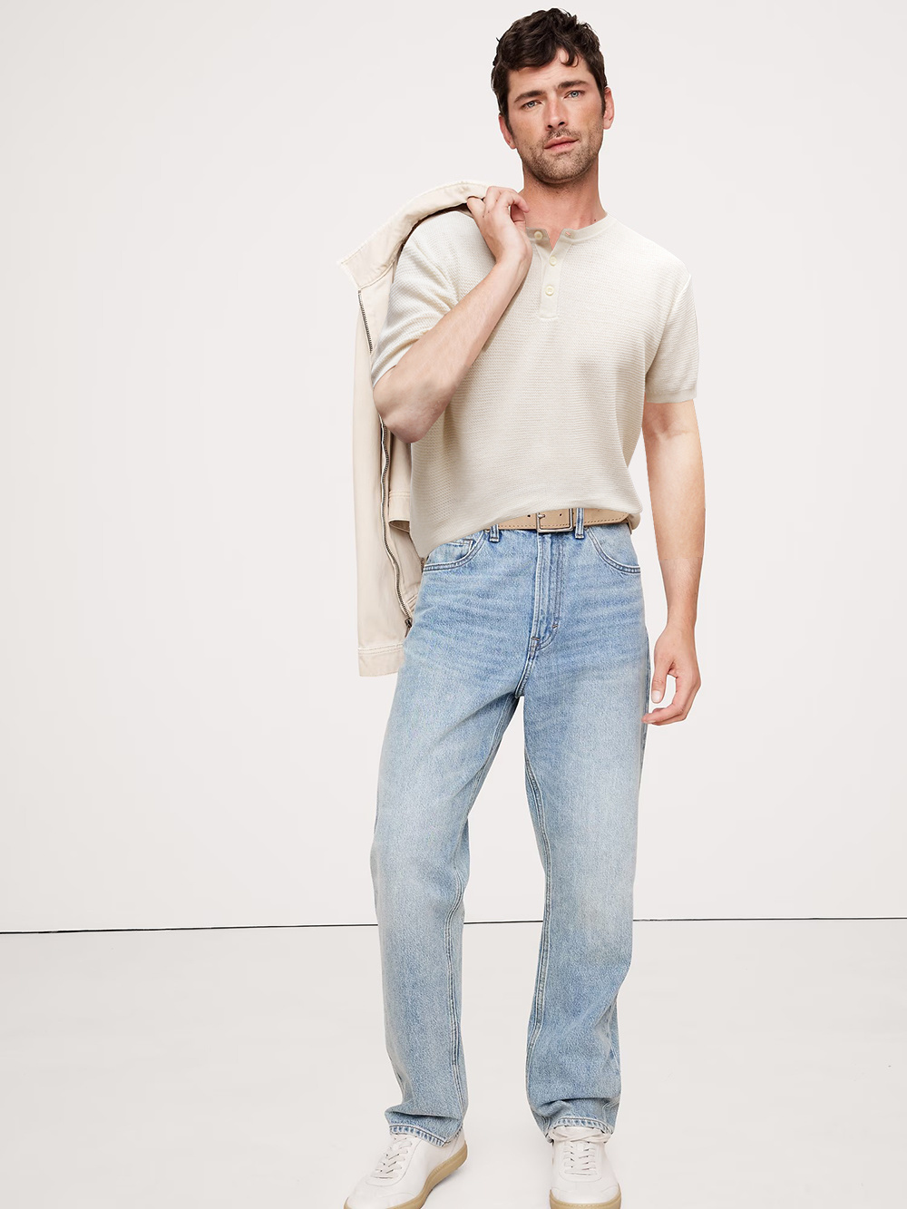 独特的亨利领设计上身时尚简约,自带慵懒气质