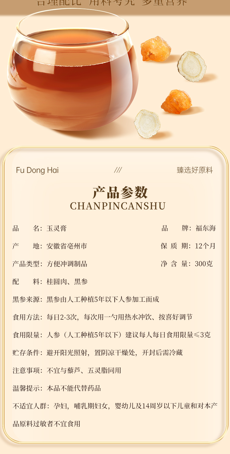 福东海 玉灵膏300克/罐 桂圆黑参气血女士营养品 玉灵膏300克