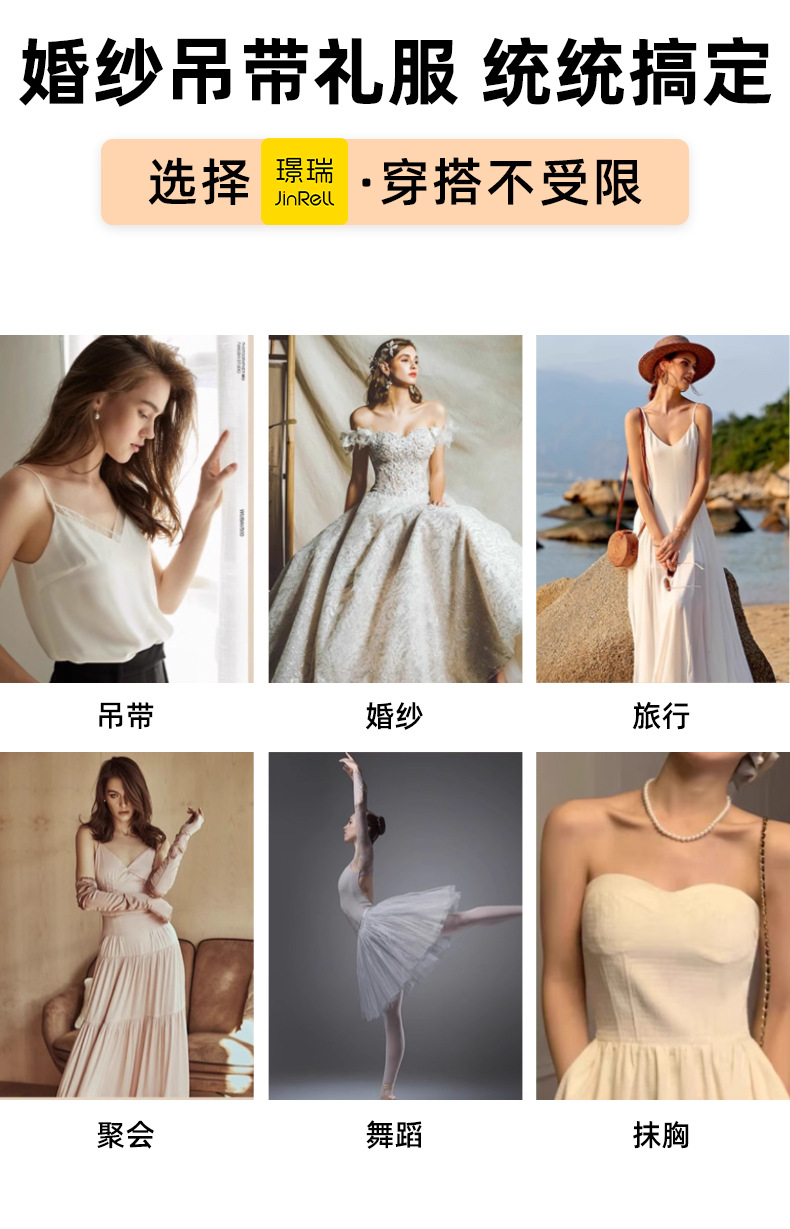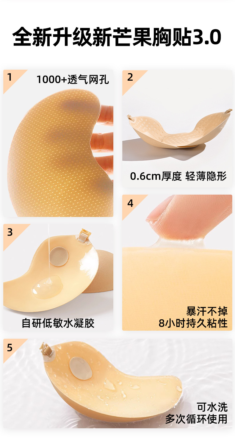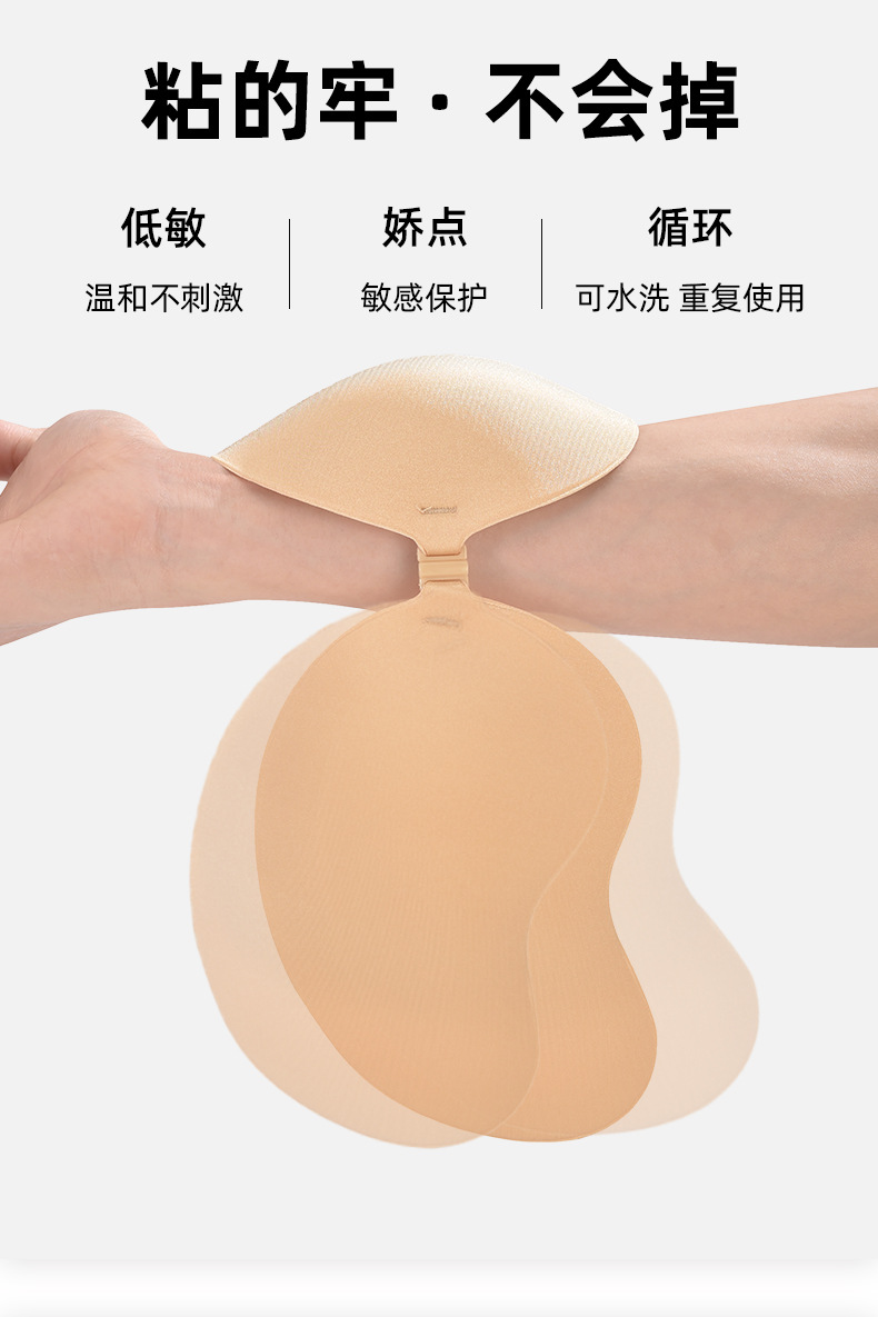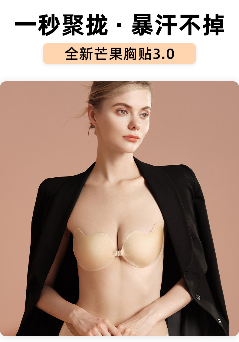 隐形无肩带文胸 流行肤色无痕聚拢防外扩透气吊带礼服宴会婚纱专用芒果胸贴