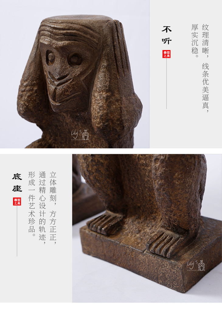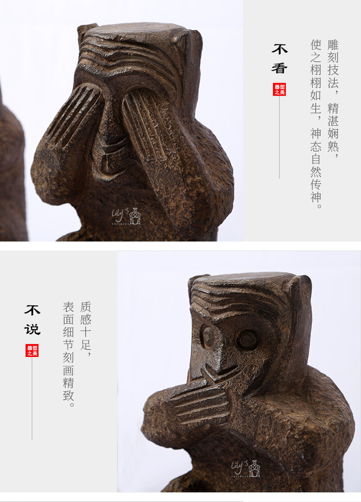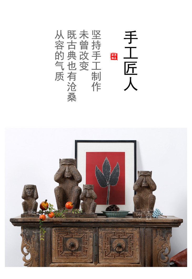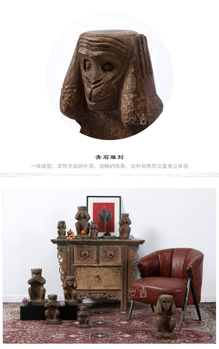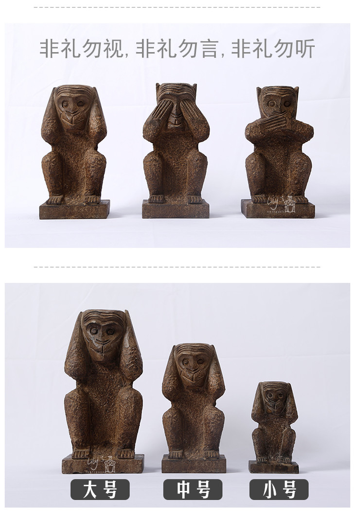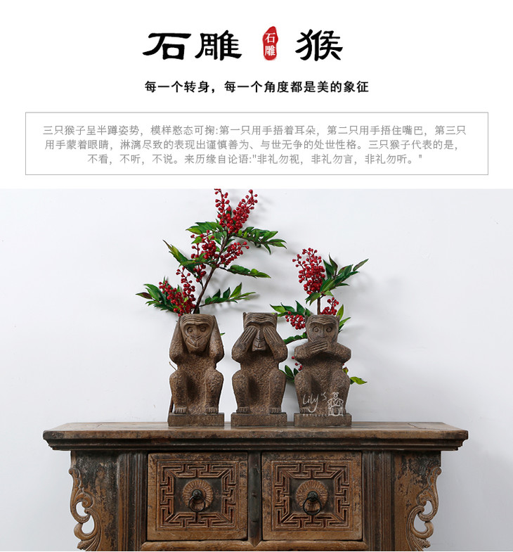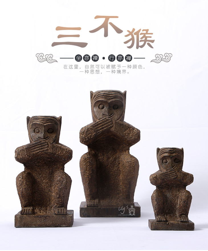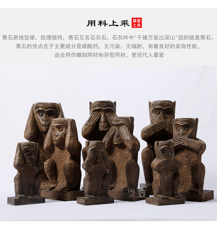 石猴子三不猴石头摆件Stone Monkey