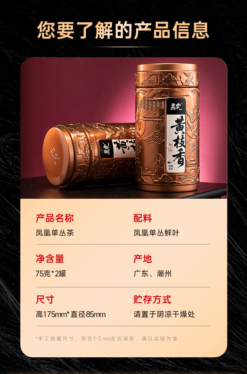 【年货礼盒】茶叶 凤凰单枞 正宗潮州凤凰单丛茶 黄枝香 乌龙茶 茶叶礼盒 茶饮 五虎 150g