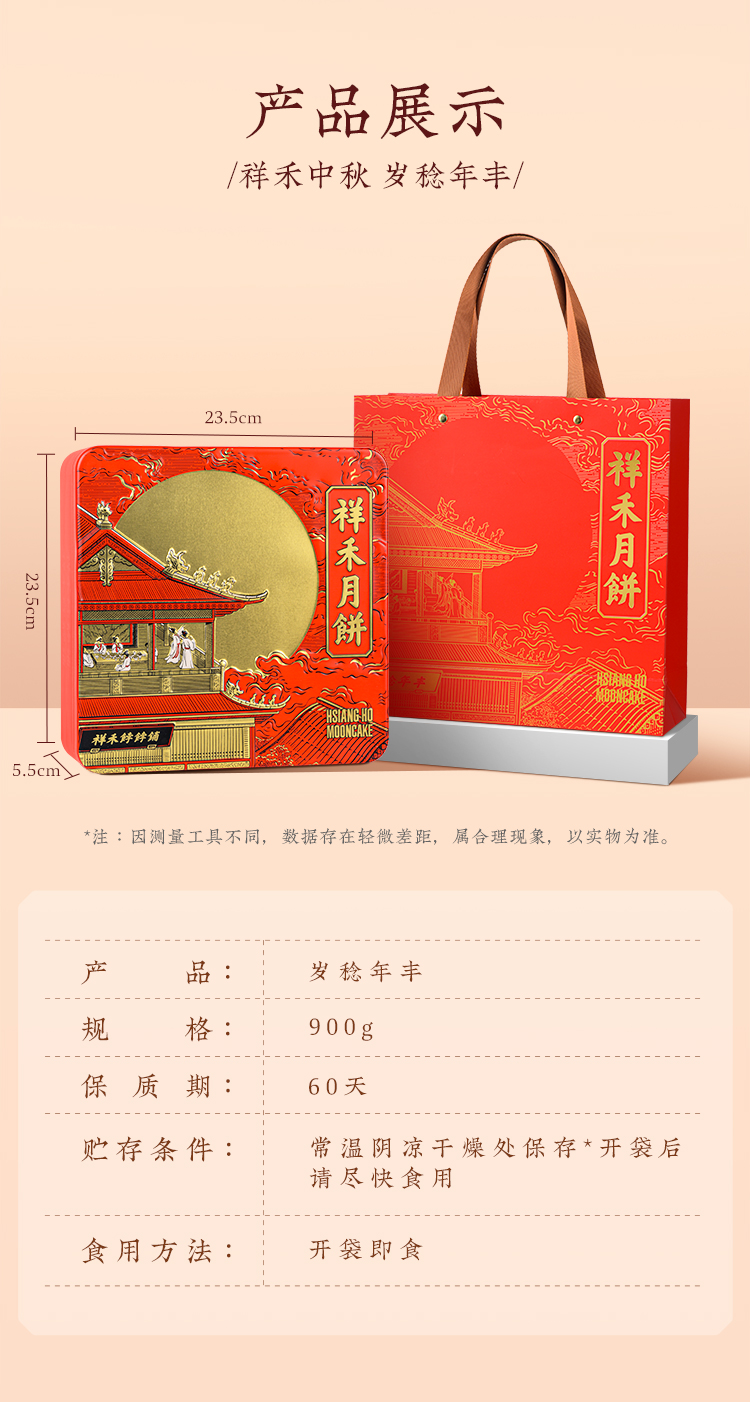【岁稔年丰】祥禾三宝大月饼中秋送礼盒装