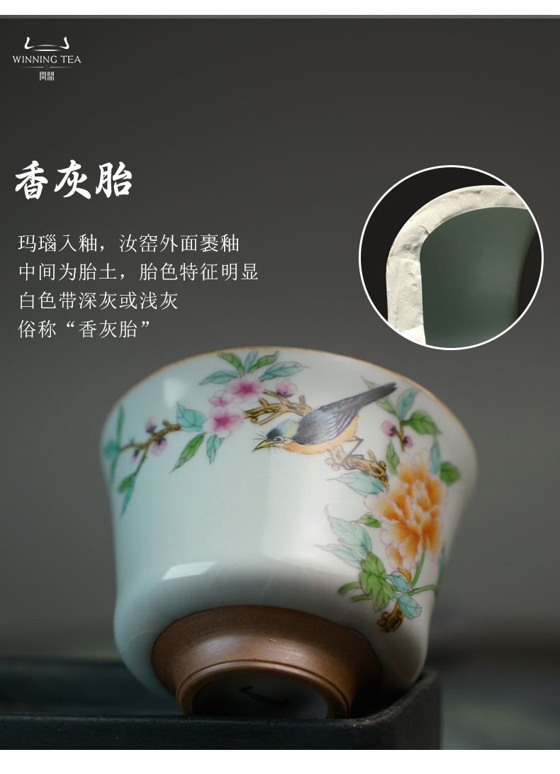 问鼎汝窑掬泉杯 (花鸟)(缺货)