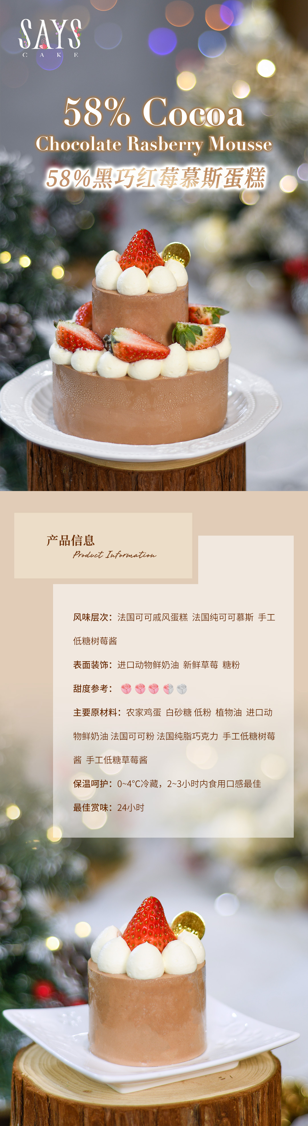 【预定】58%黑巧红莓慕斯蛋糕 58% Cocoa Chocolate Rasberry Mousse