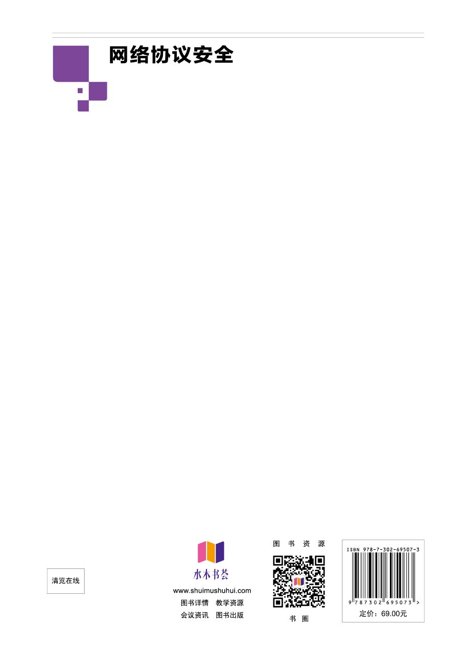 本书内容新颖,覆盖全面,以网络协议的安全为主线,突出“理论十实操”的特色,适合作为高等院校网络空间安全、信息安全、计算机科学与技术等专业的教材,也可作为安全运维工程师、网络安全服务工程师的参考书。