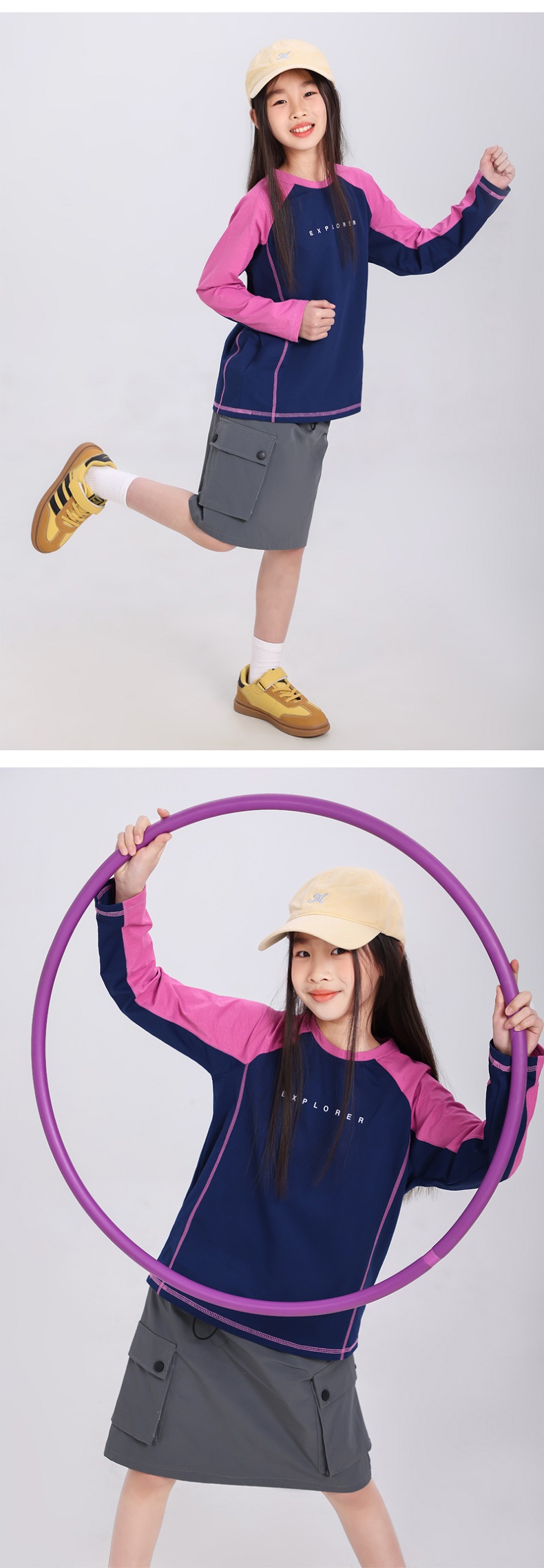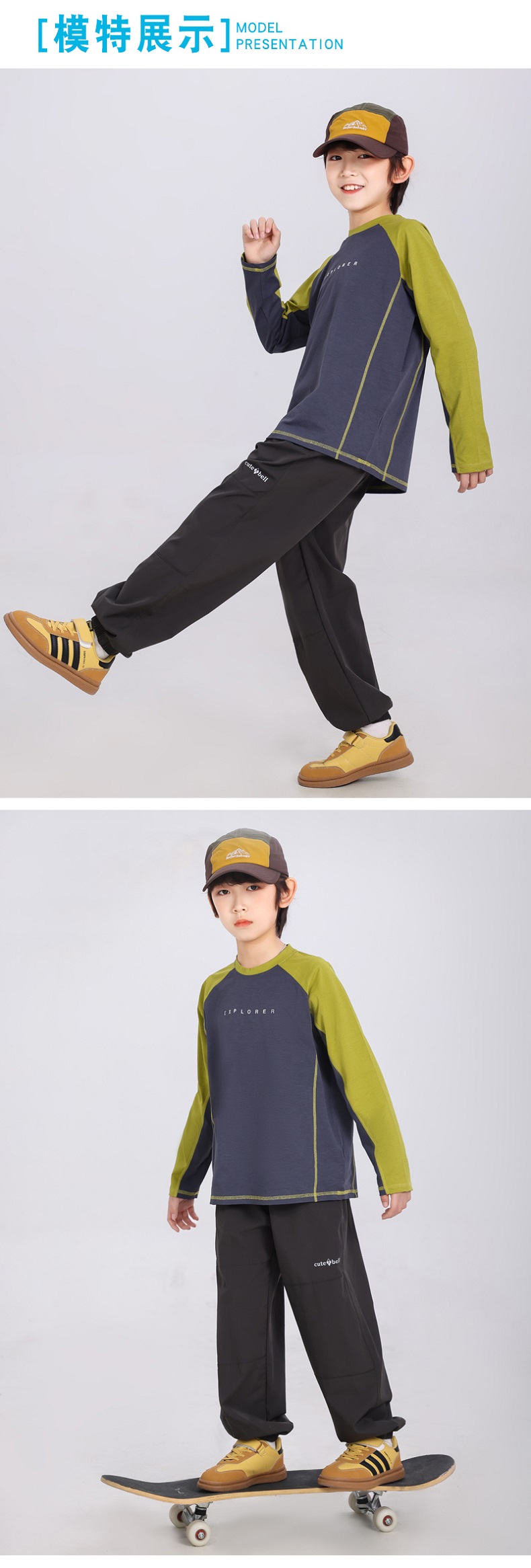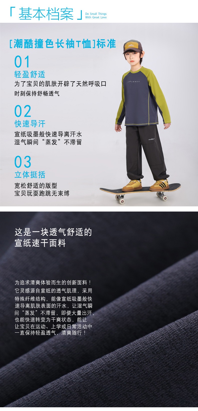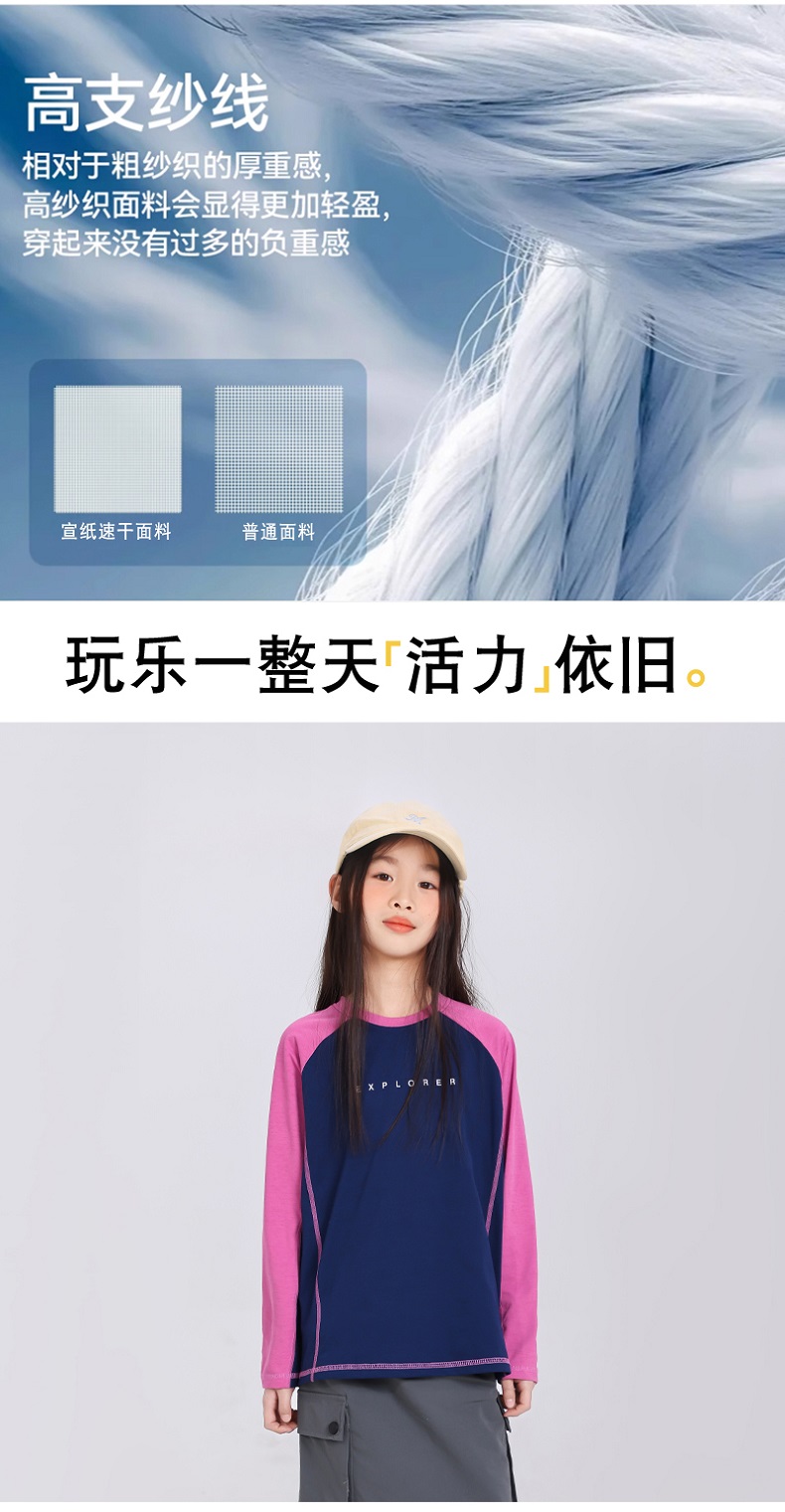 【超模君严选 运动娃必备 宣纸速干,张弛有度】春季新款儿童宣纸速干潮酷撞色长袖T桖高支纱线宽松舒适棉感圆领长袖T