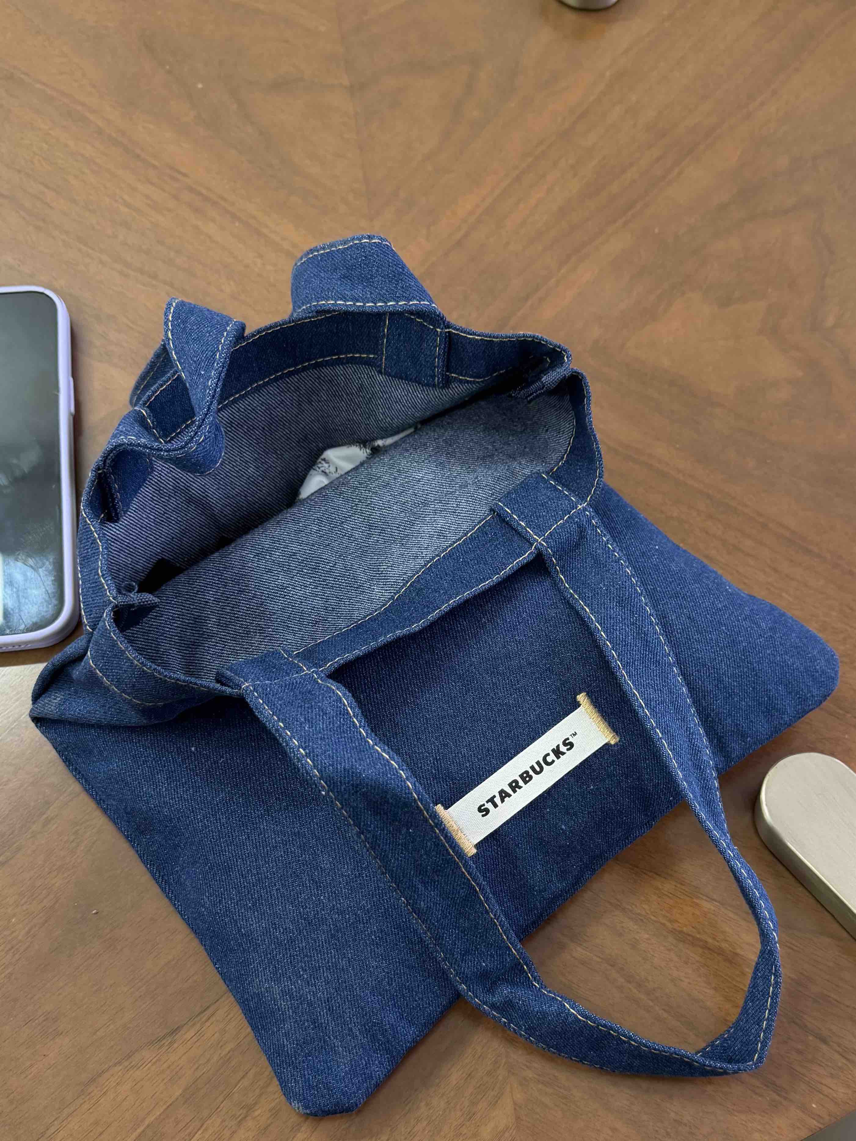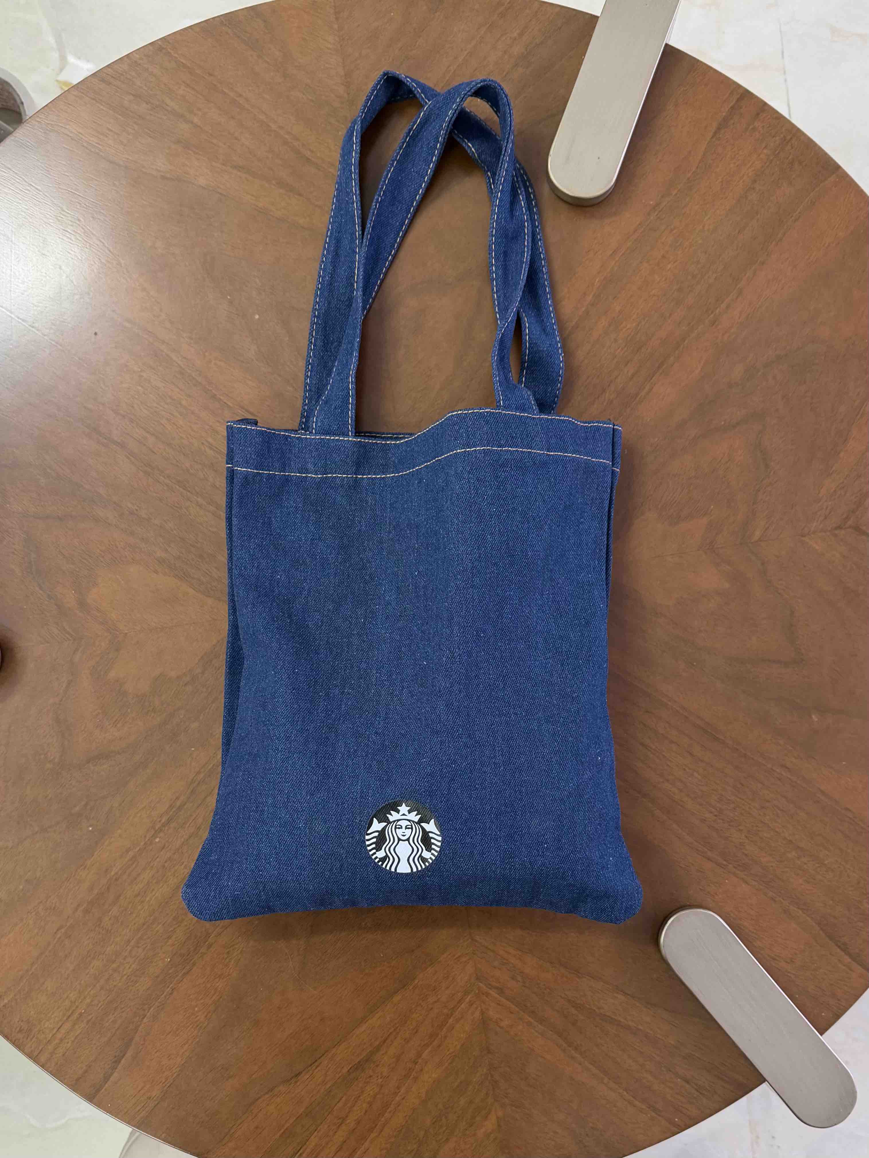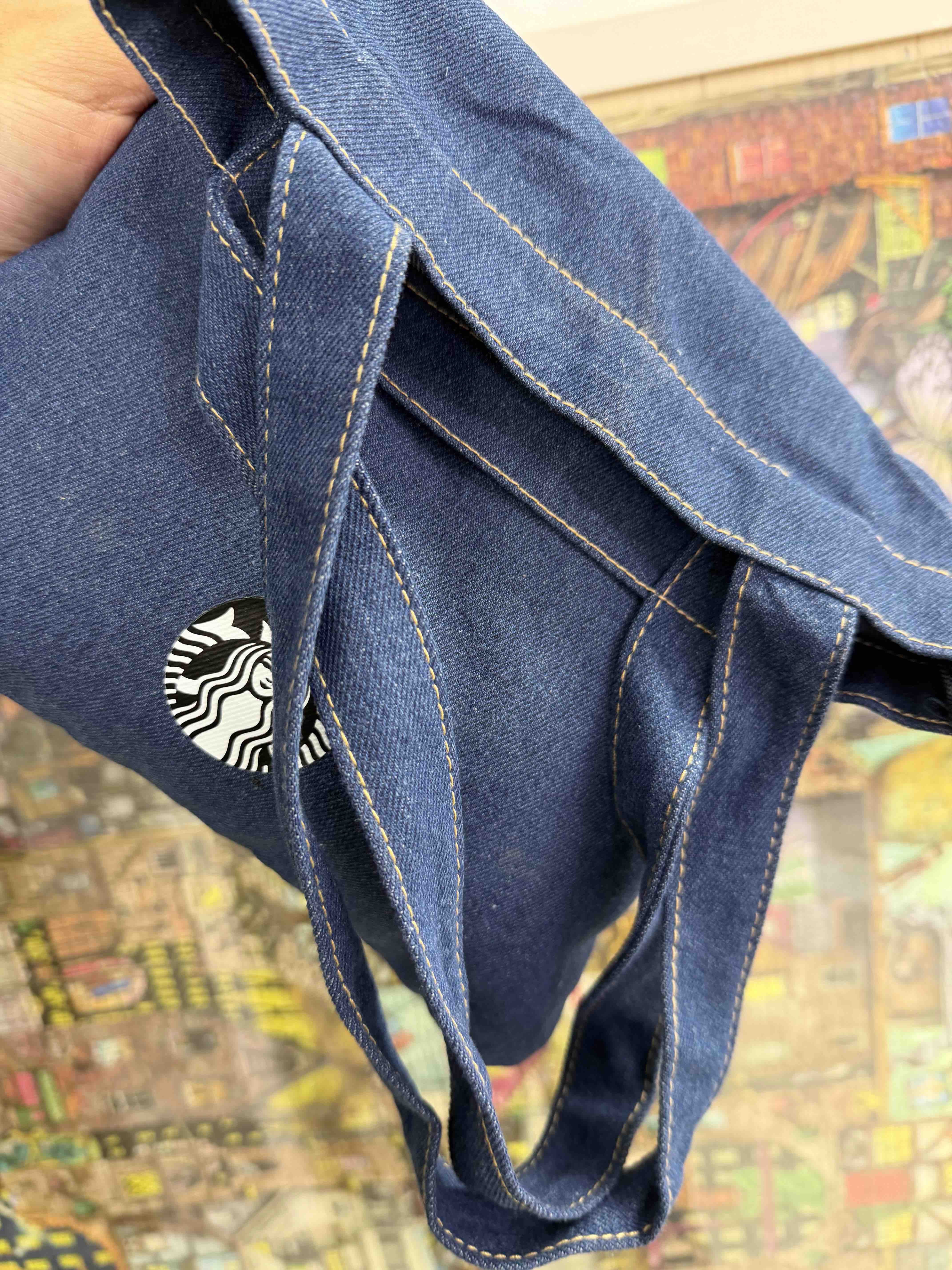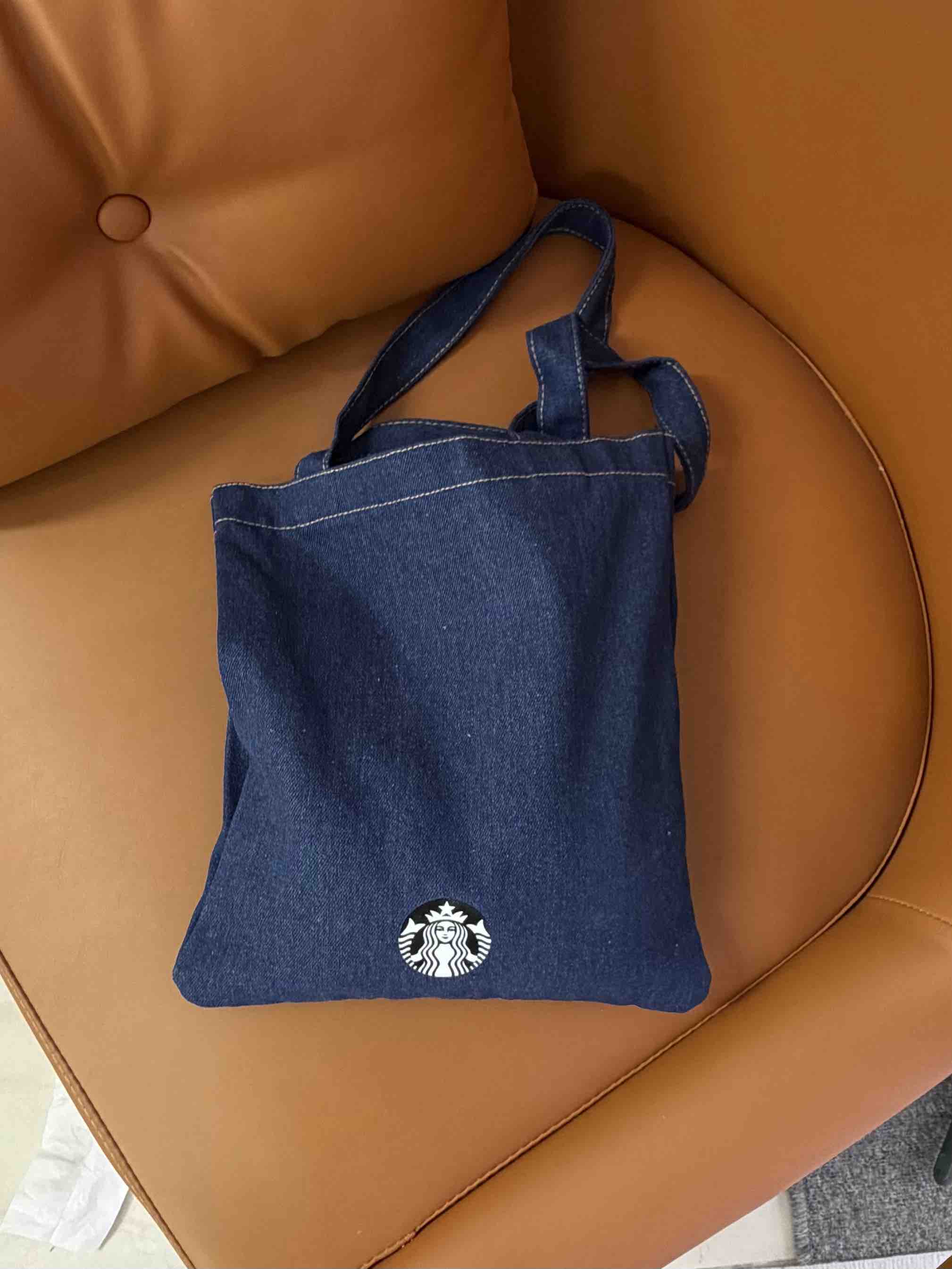台湾星巴克2025经典丹宁缇花工艺绒布 手提书袋