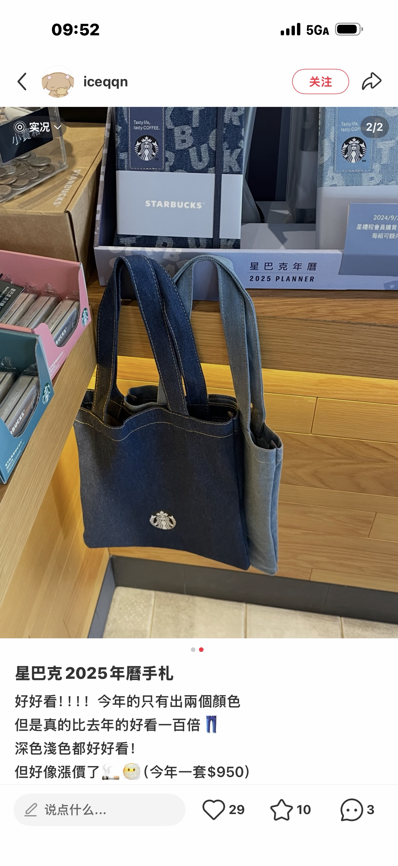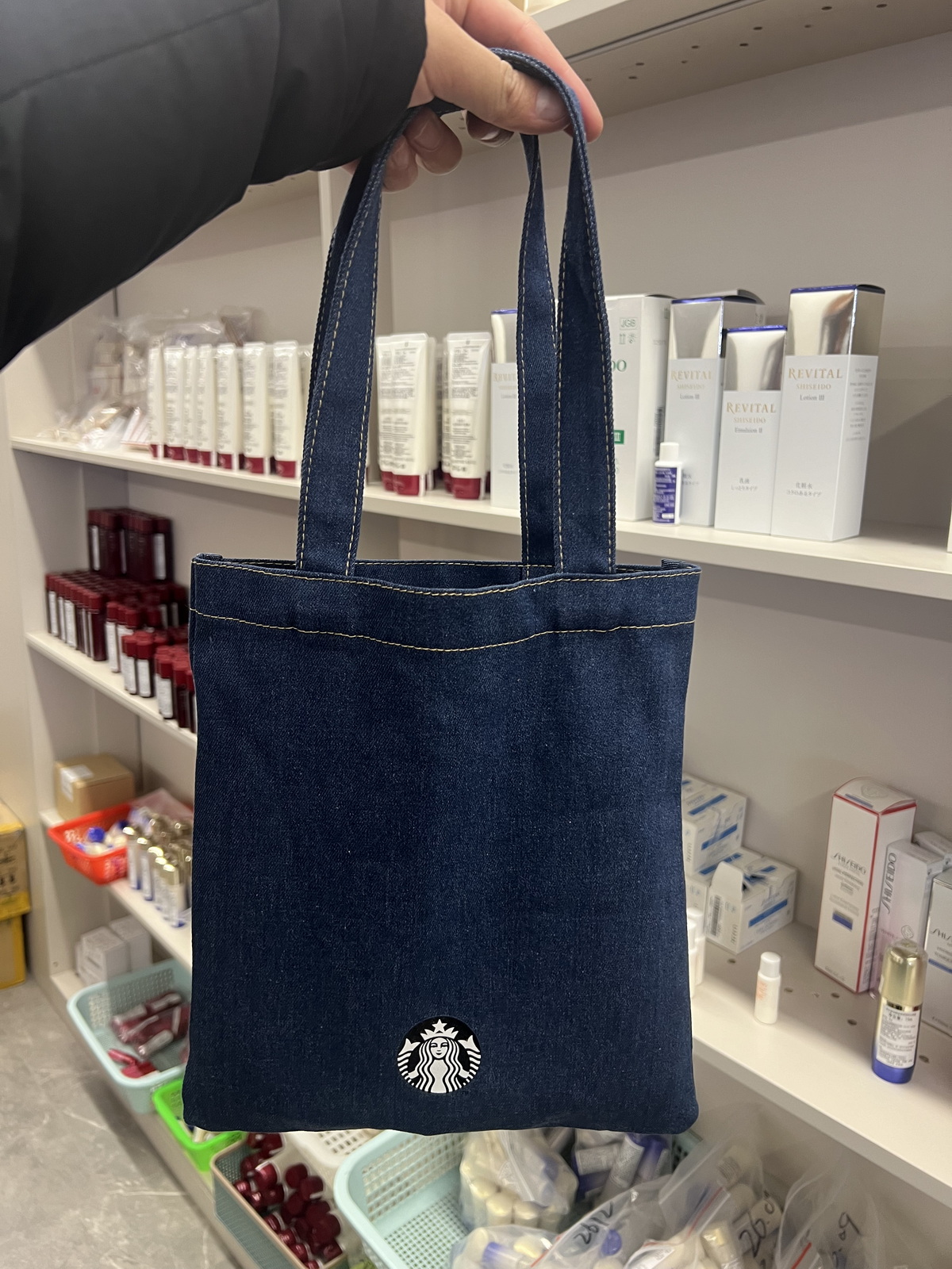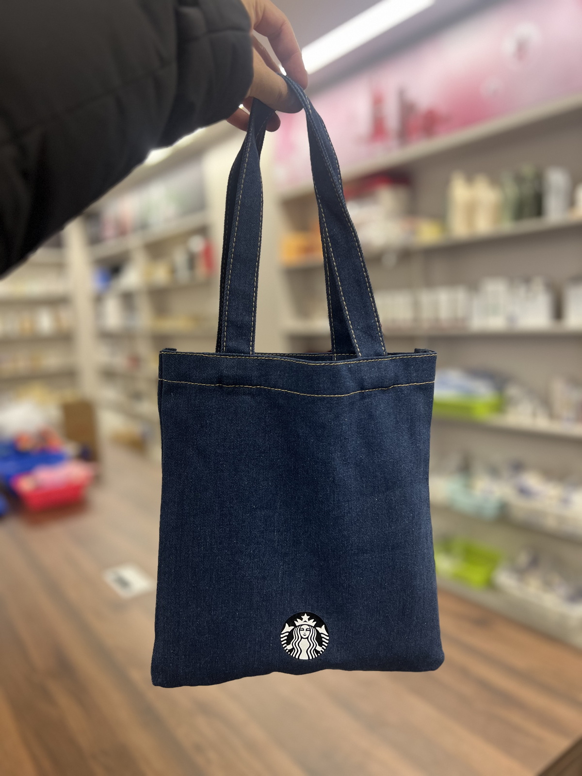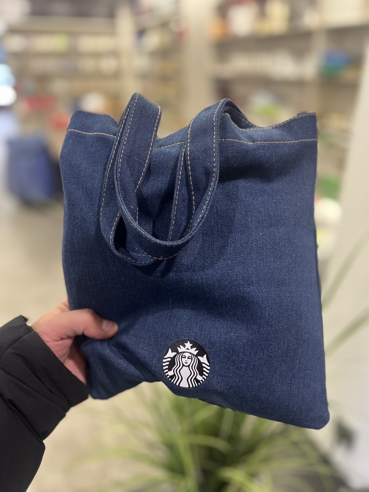 台湾星巴克2025经典丹宁缇花工艺绒布 手提书袋