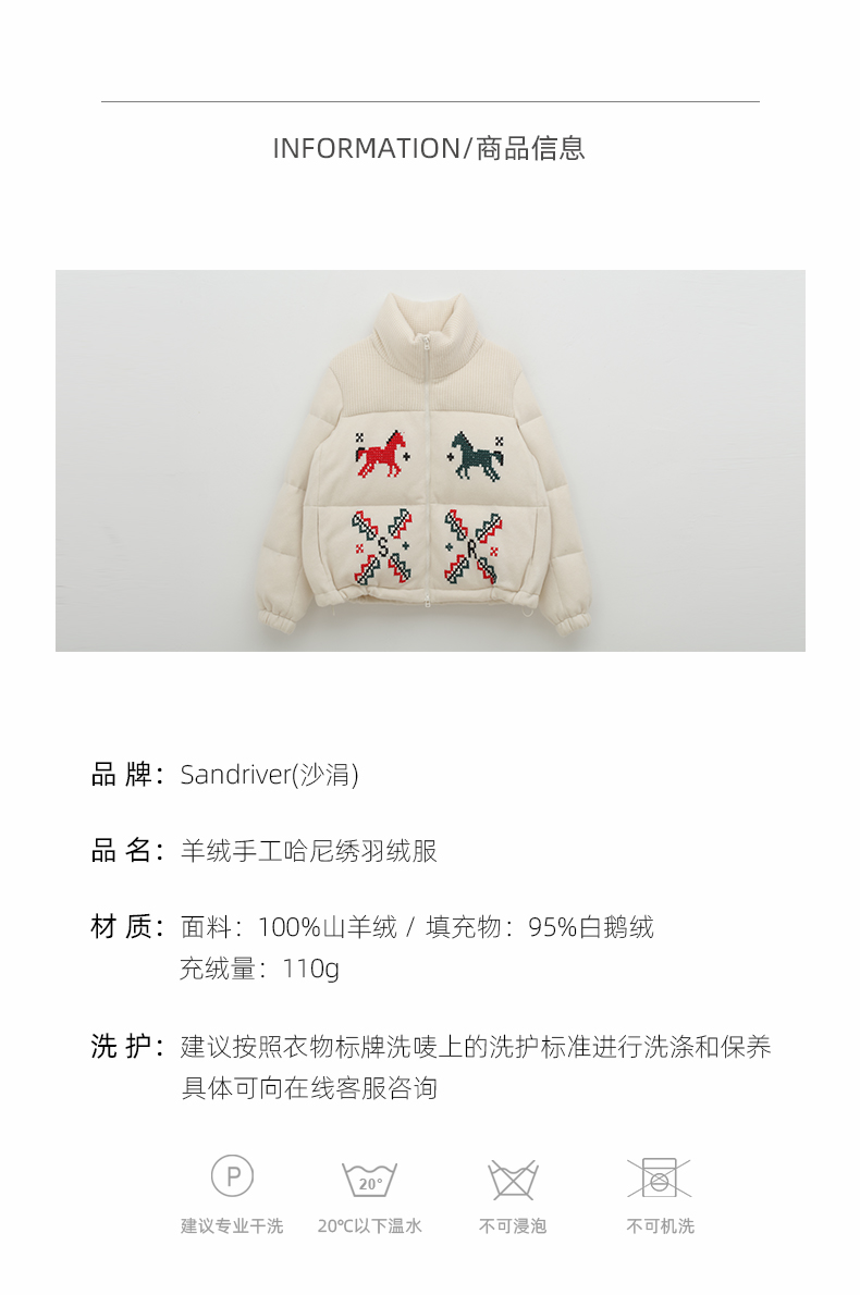 手工哈尼绣羊绒羽绒服 SJF97W238N