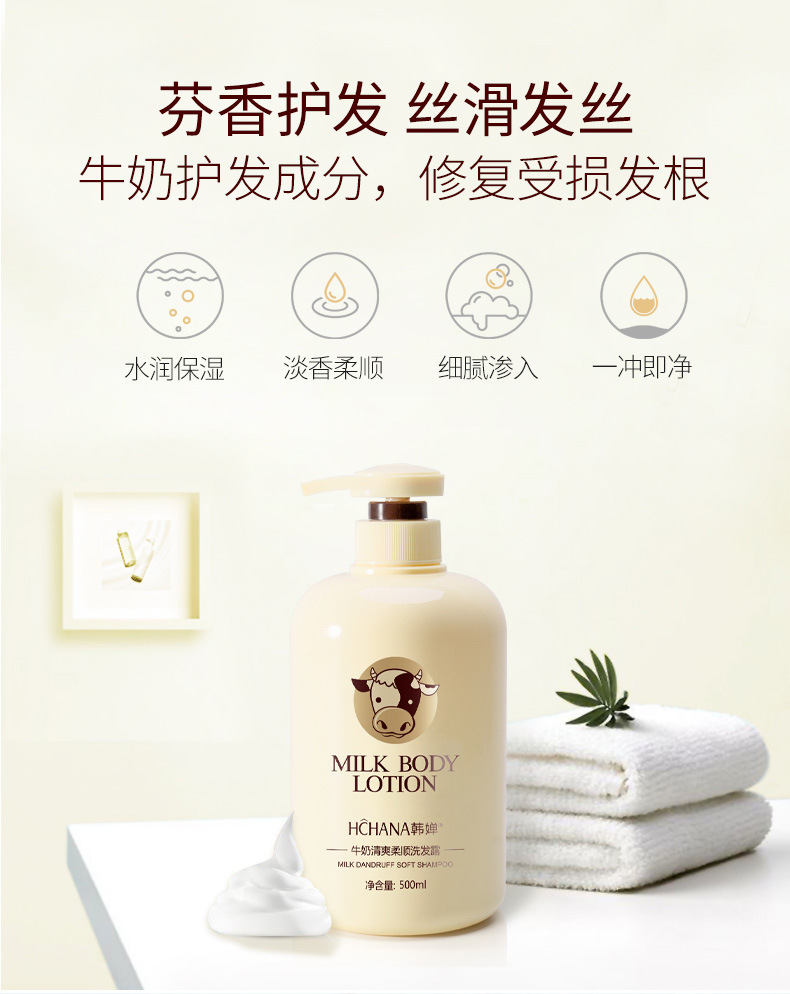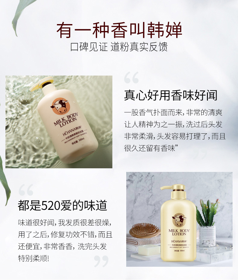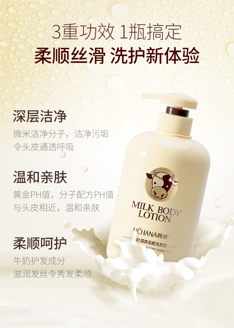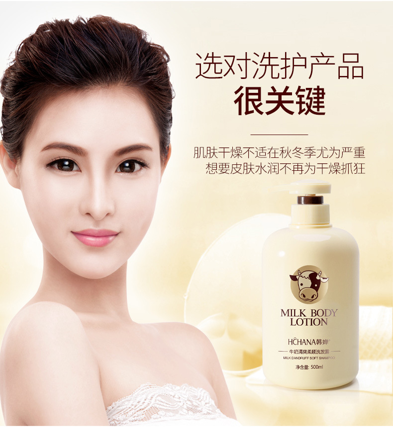 【沐浴露/洗发套装】韩婵牛奶清爽柔顺顺滑滋润保湿改善毛躁丝滑去屑洗发露沐浴露 美妆个护