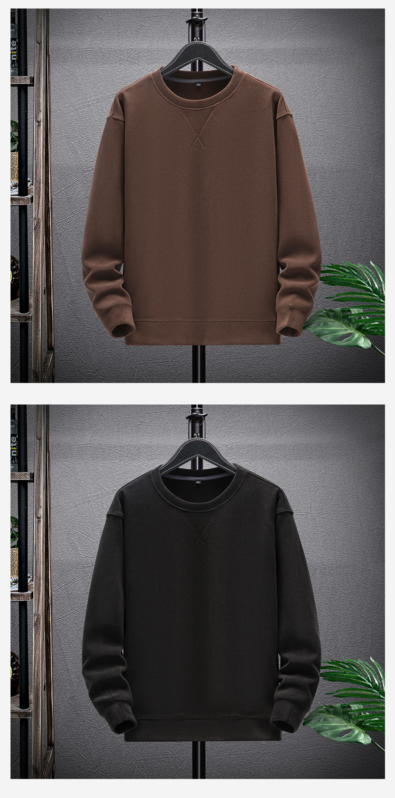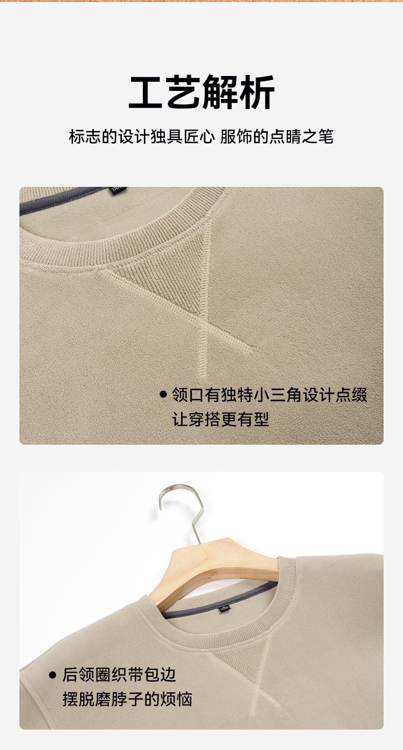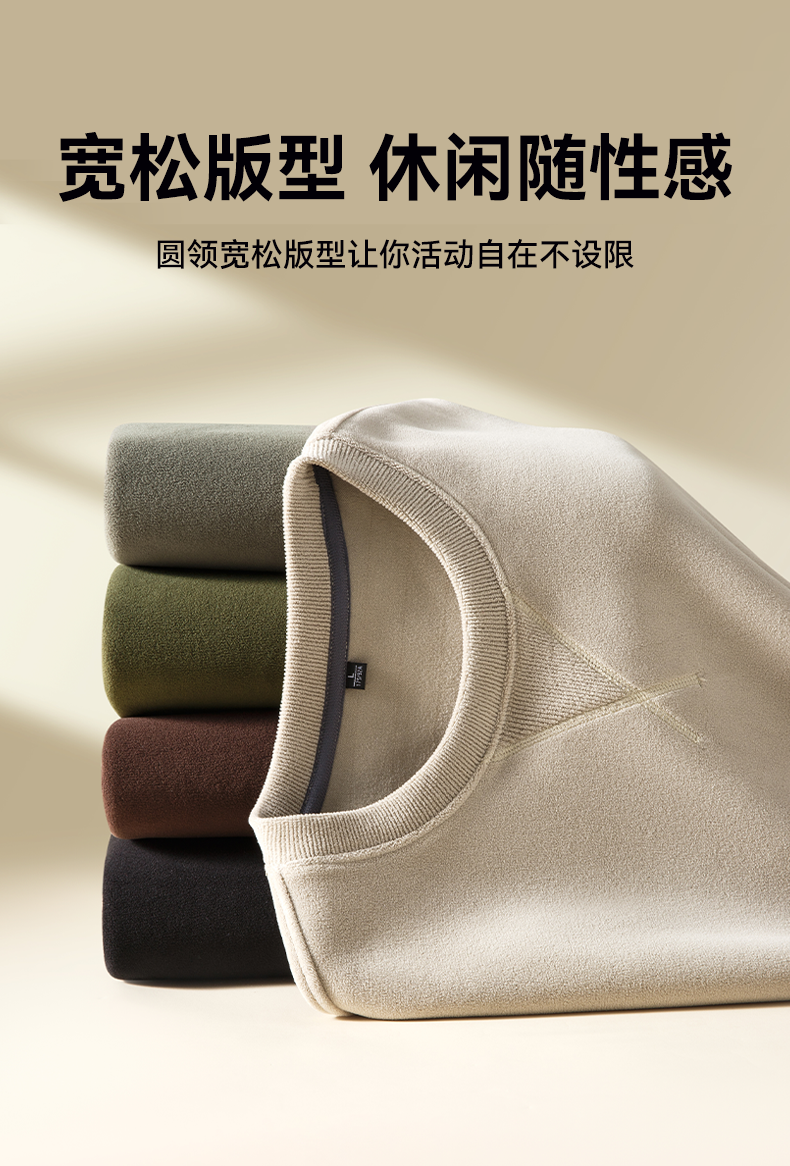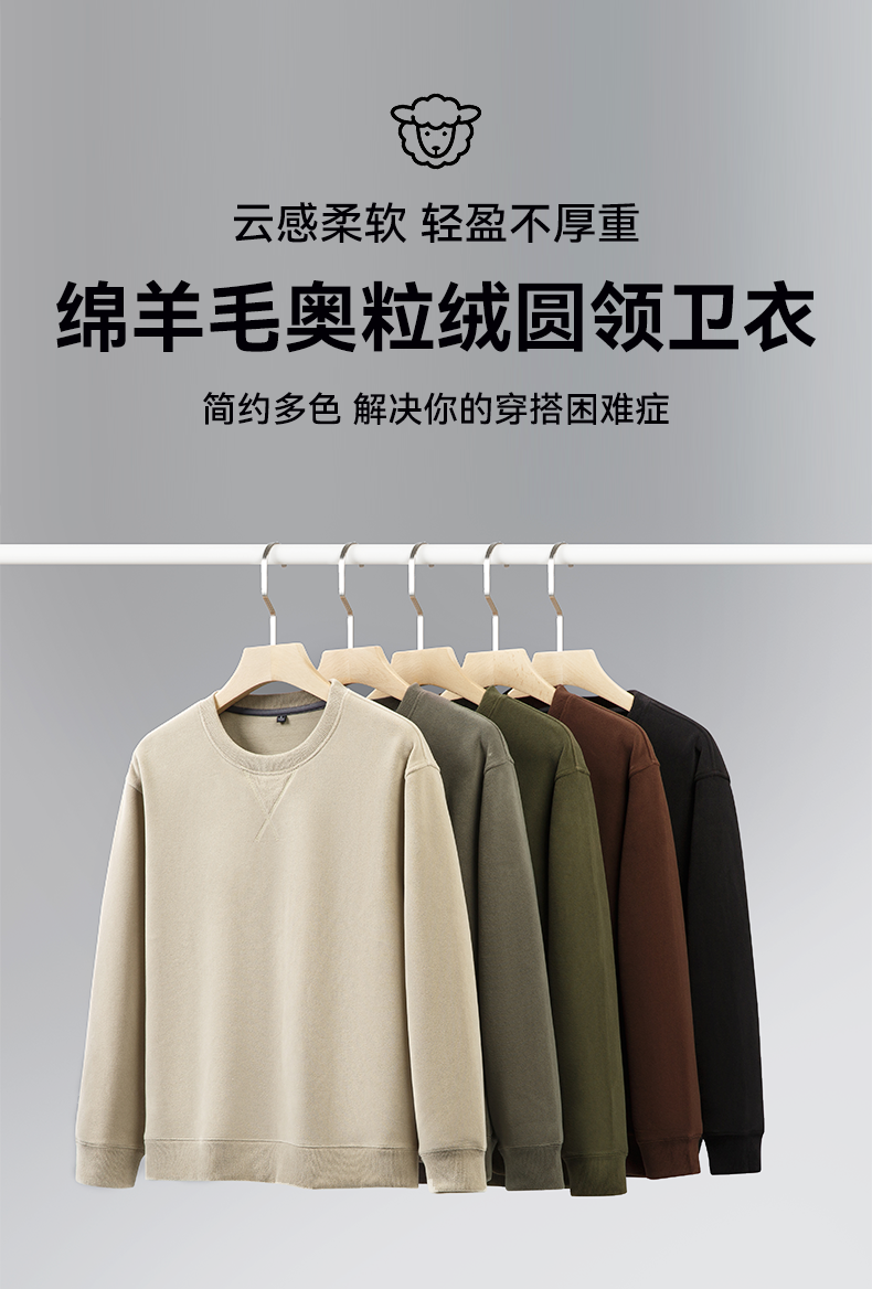 【奥粒绒加厚圆领卫衣】占姆士男士秋冬纯色加绒保暖御寒卫衣长袖上衣
