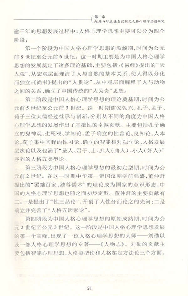 第一章 起源与形成:先秦汉魏之人格心理学思想研究
