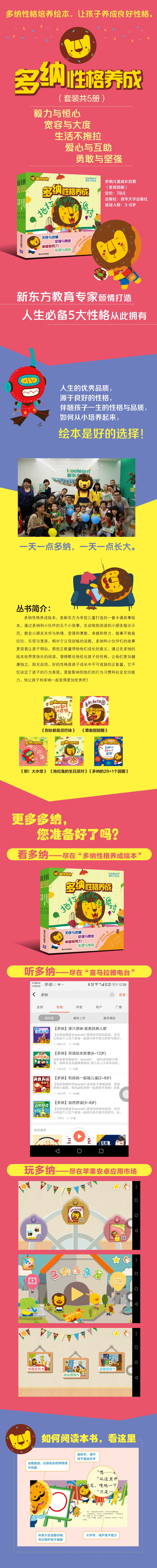 《多纳性格养成》系列通过五个小故事生动地给阅读的小朋友做出示范,教会小朋友关怀与热情、坚强和勇敢、卓越和努力、做事不拖拖拉拉、乐观与宽容。相对于父母刻板的说教,多纳和小伙伴们的故事更容易让孩子明白,那些正能量带给他们成长的意义。
