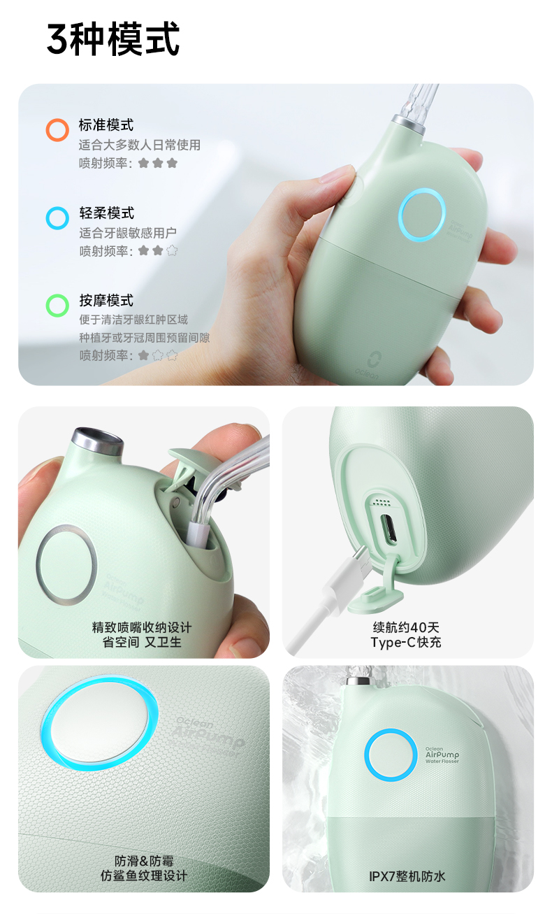 【专属】Oclean欧可林有氧冲牙 家用旅行小巧便携舒适护龈洗牙器 正畸高颜值推荐水牙线冲牙器A10