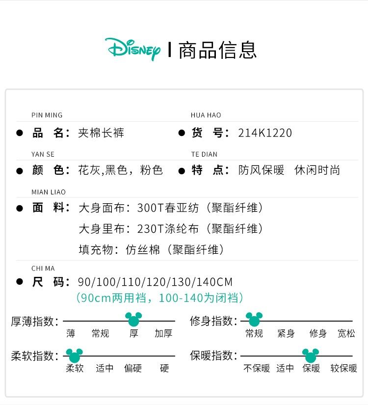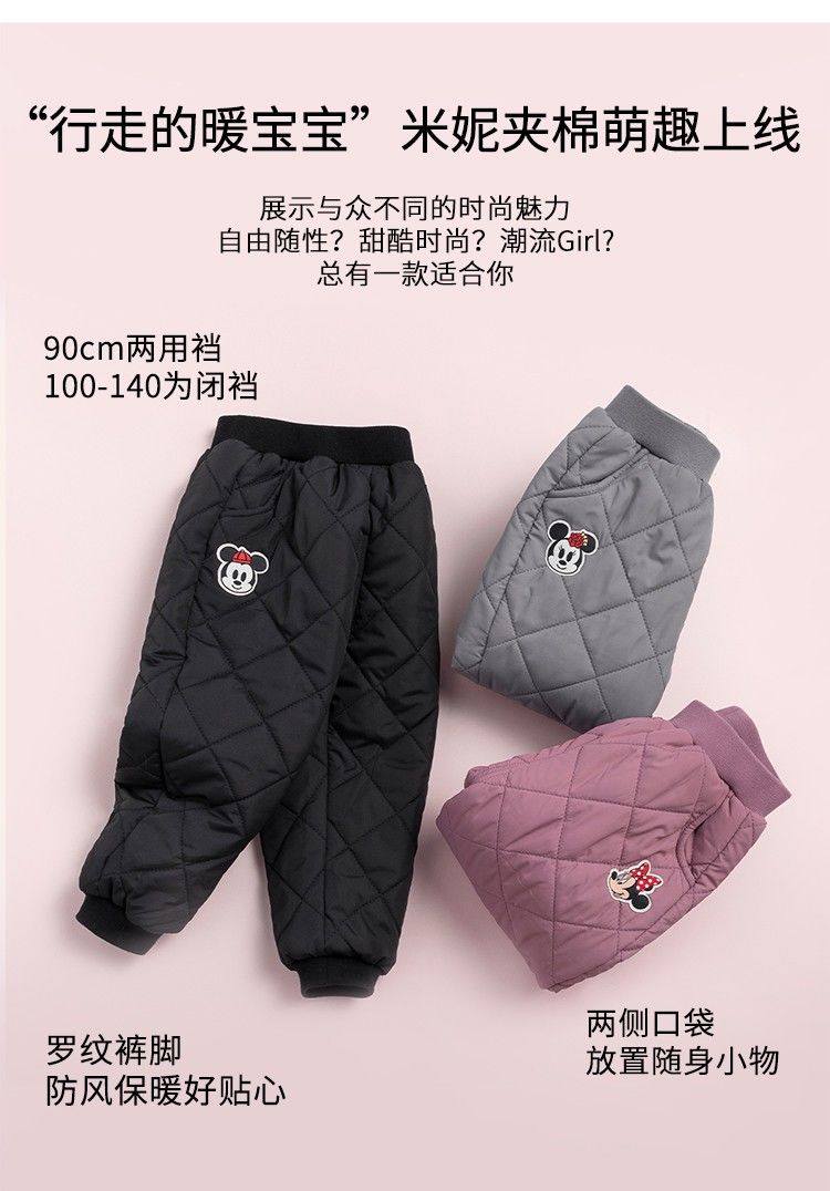 迪士尼米妮女童宝宝三层棉裤儿童冬季加厚夹棉中小童保暖长裤子214K1220