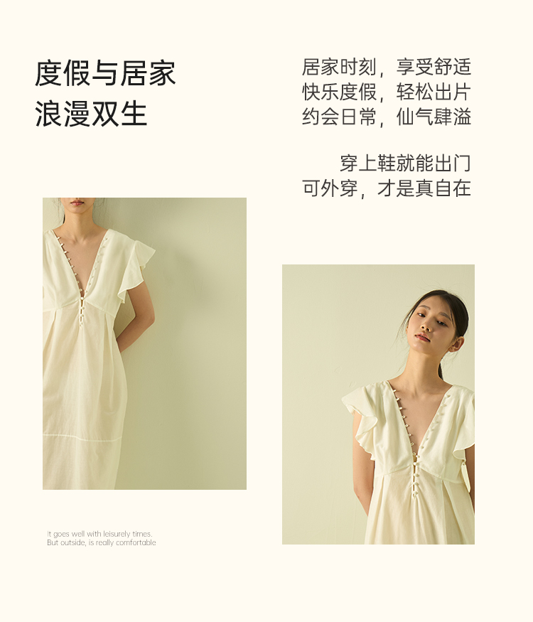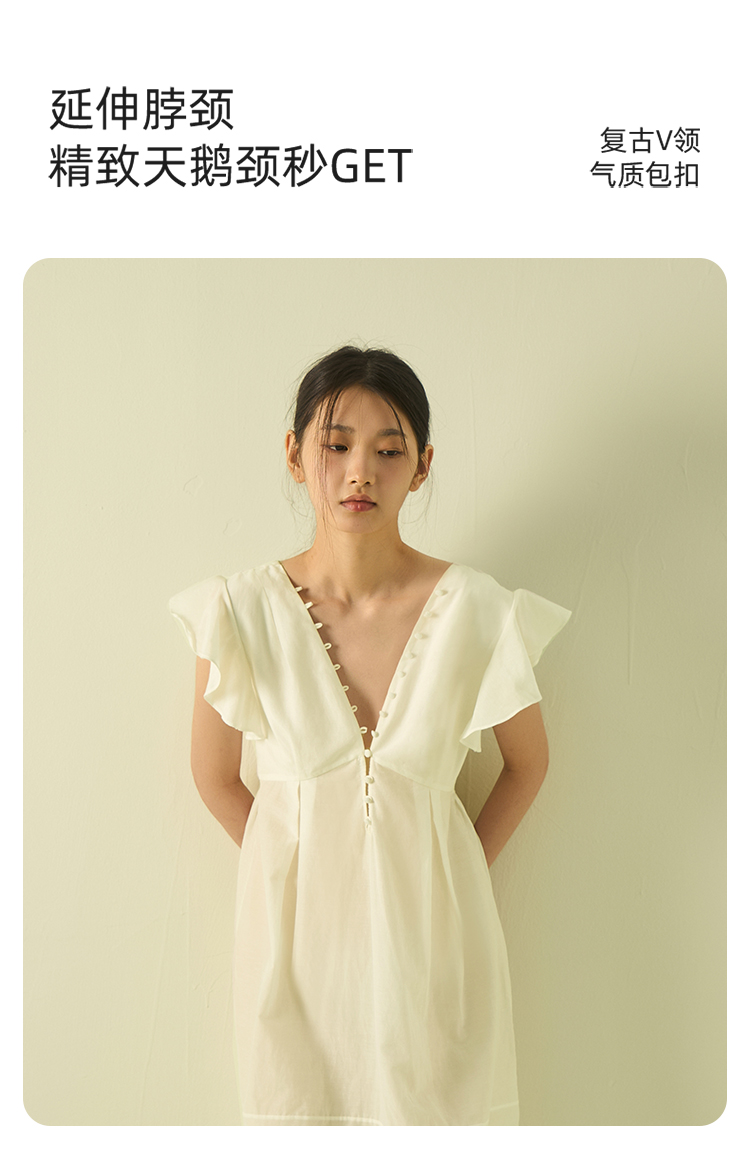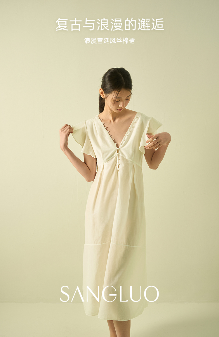 桑罗宫廷风荷叶边丝绵睡裙浪漫独家约会25年春夏03A23135