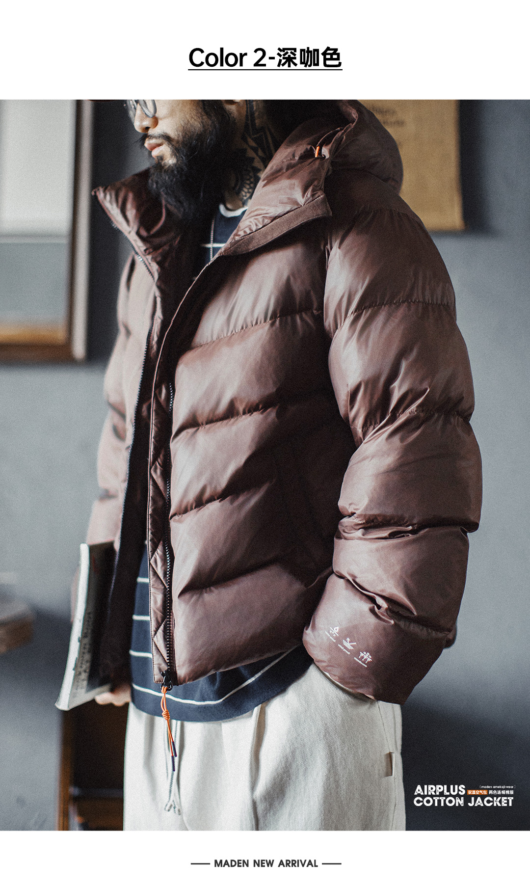 马登工装美式连帽立领棉服山系户外软壳衍缝面包服短款外套男秋冬