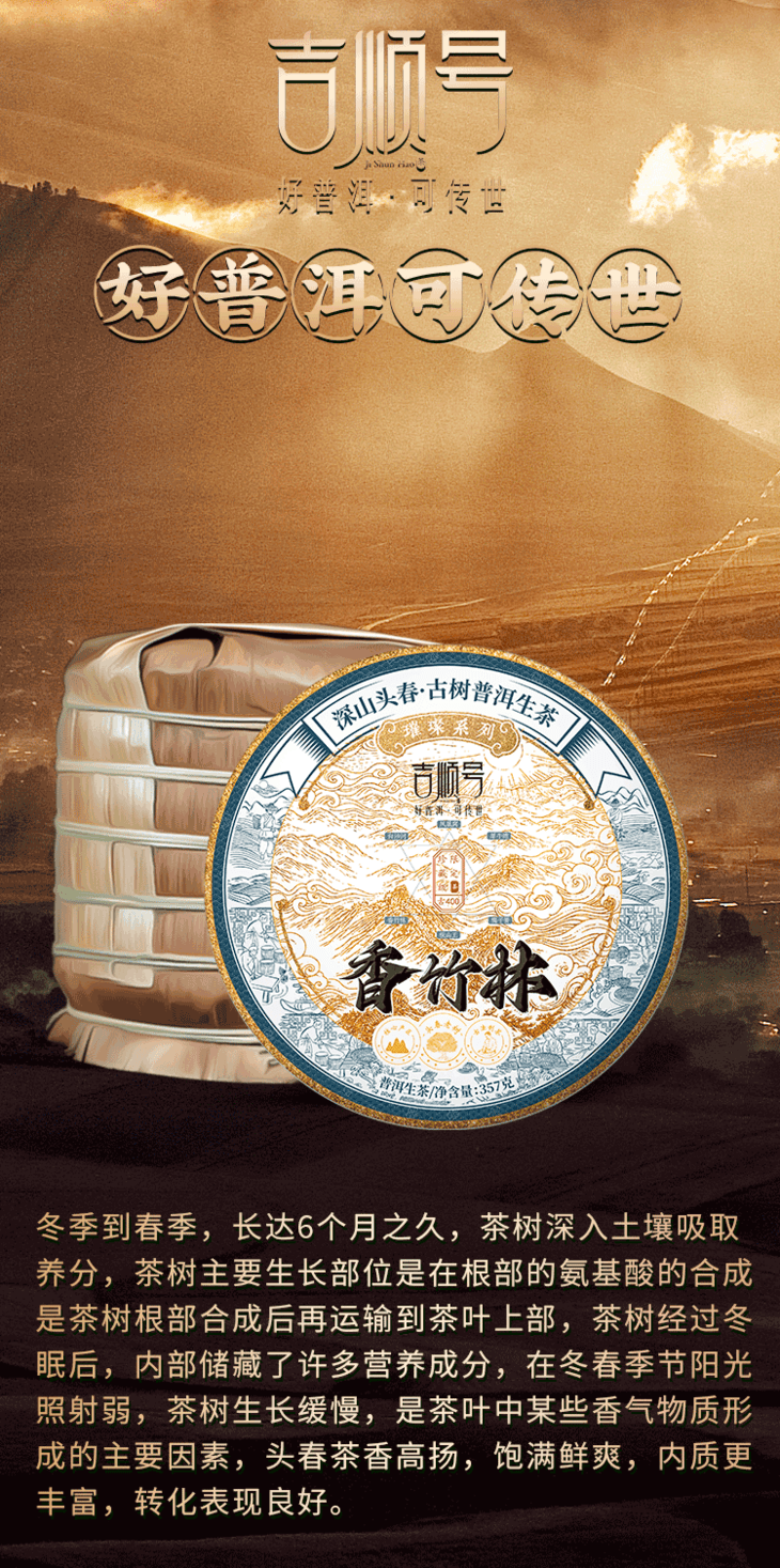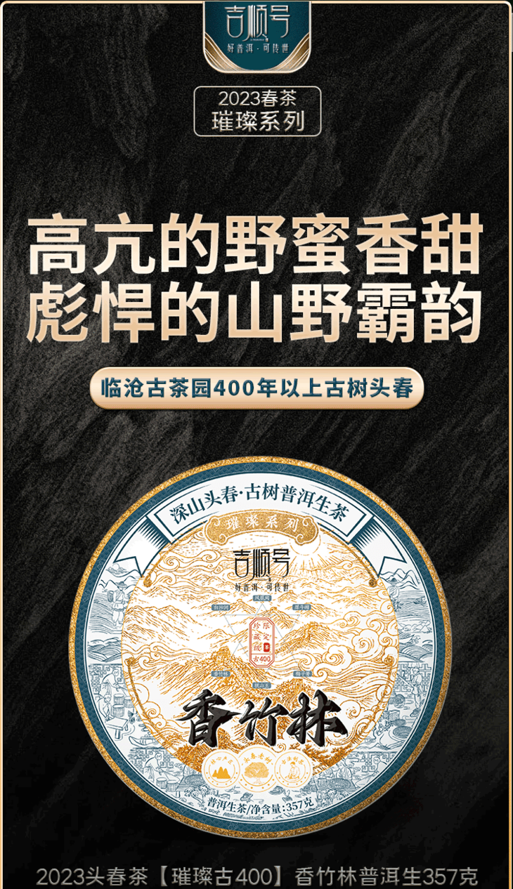 2023春茶 吉顺号古400临沧香竹林普洱茶生茶饼茶茶叶357g