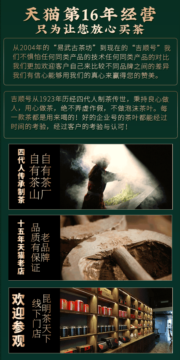 - 云南吉顺号茶业,专业云南普洱茶基地生产销售商。自有基地茶厂及运营仓储物流团队。