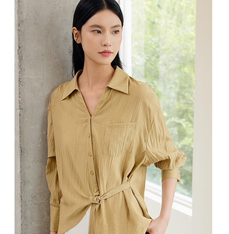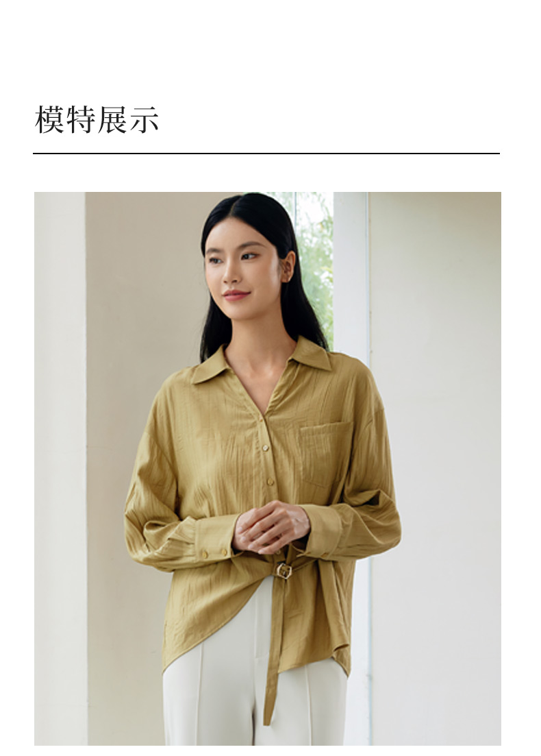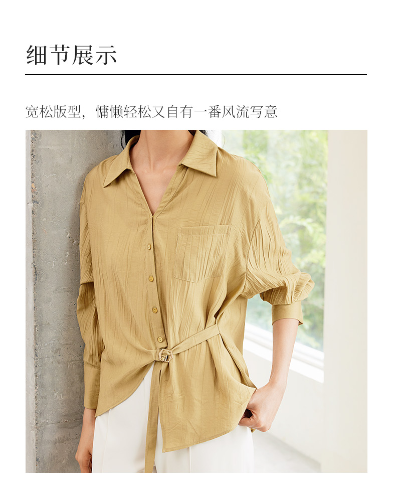 玳莎时尚不规则设计感衬衫女2024年秋季新款可调节腰带长袖外套 EC31302