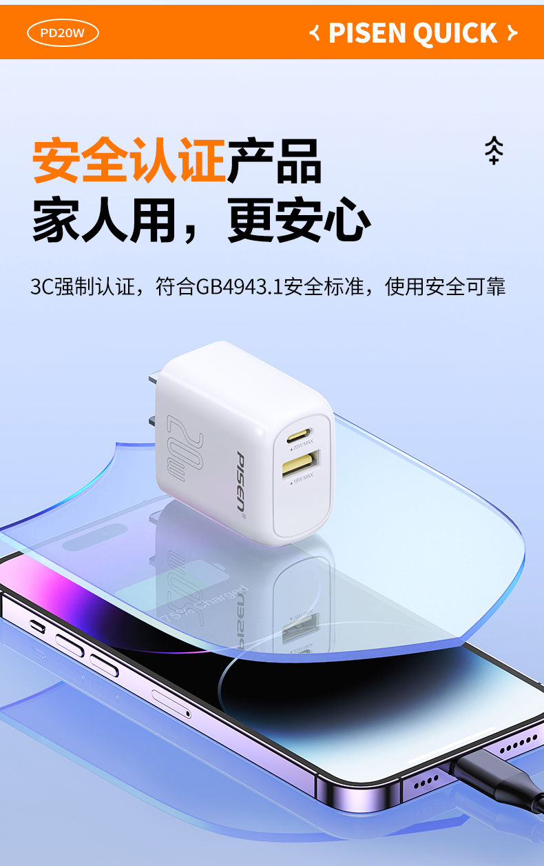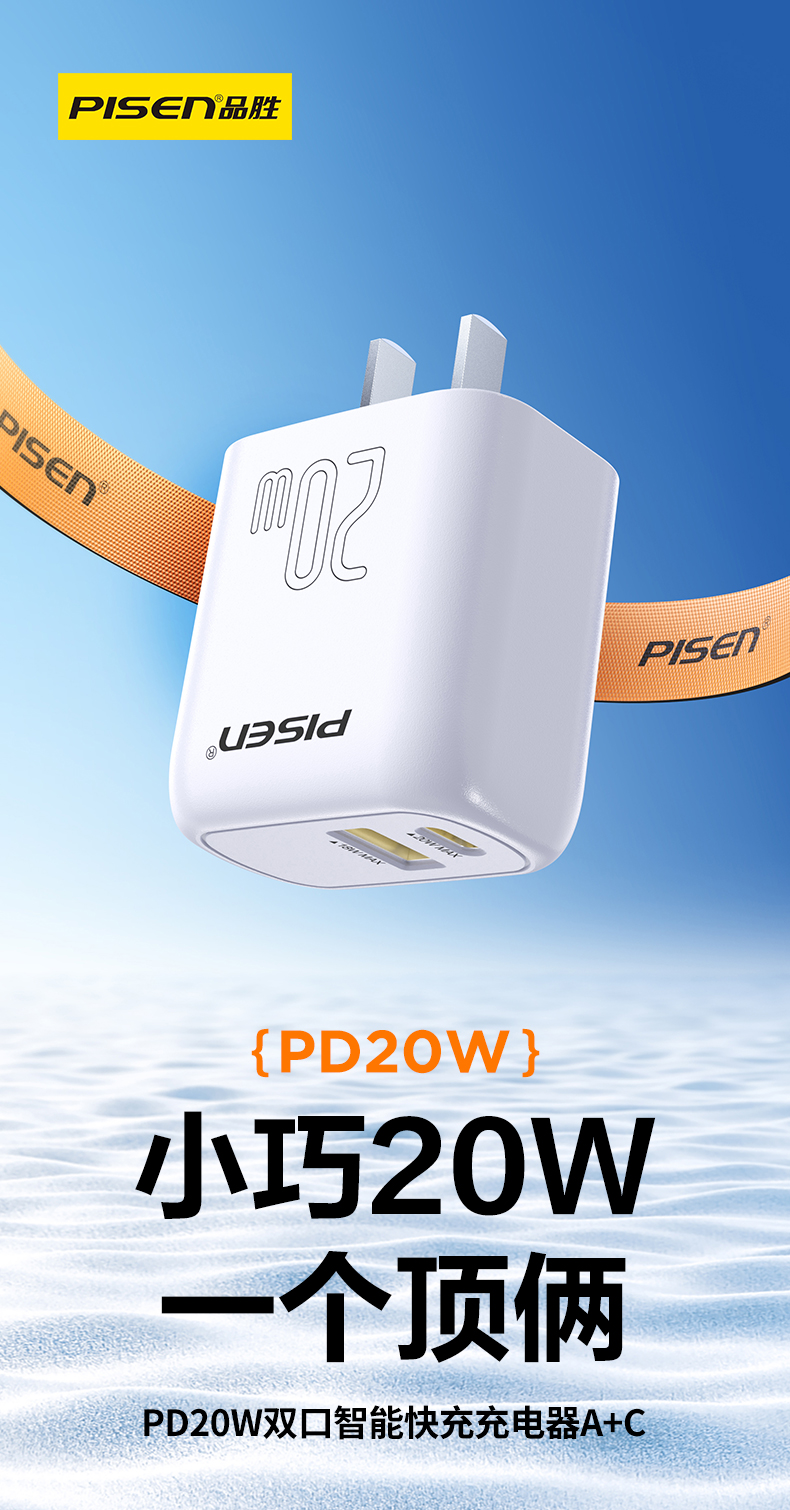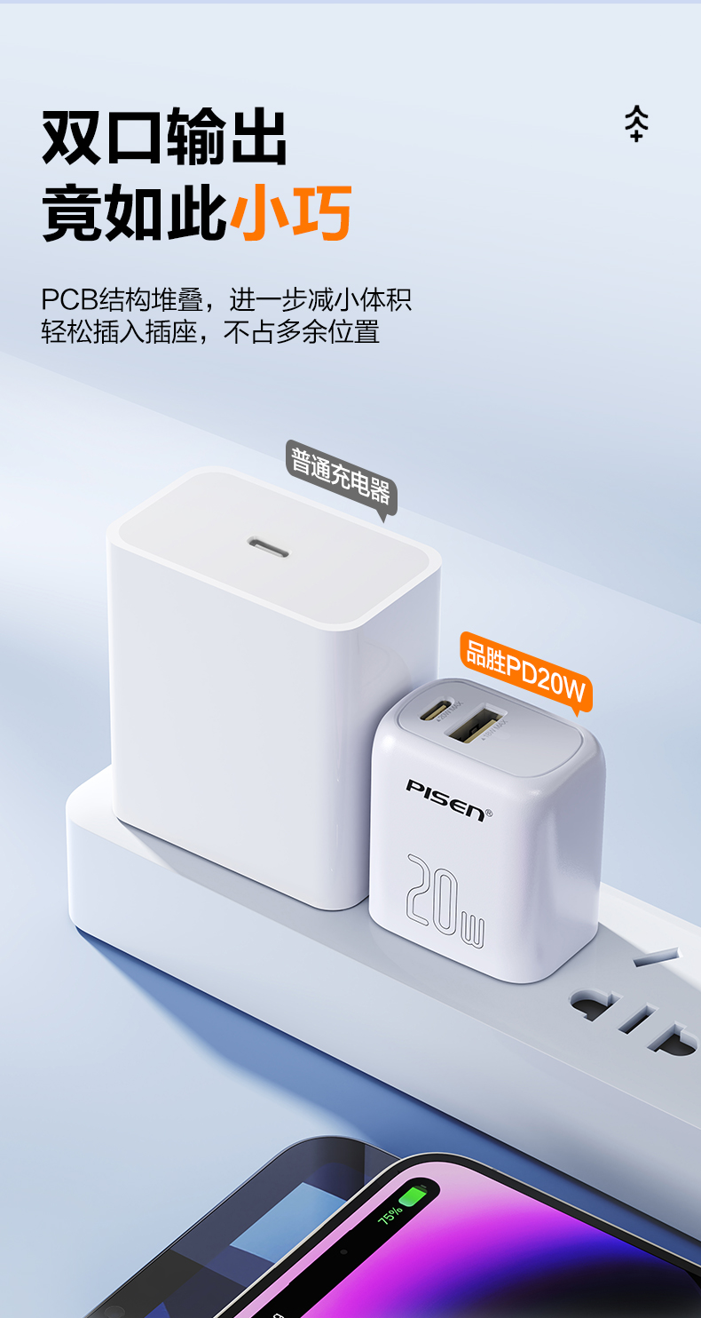 品胜 PD20W双口智能快充充电器A+C 适用于苹果华为小米快速充电