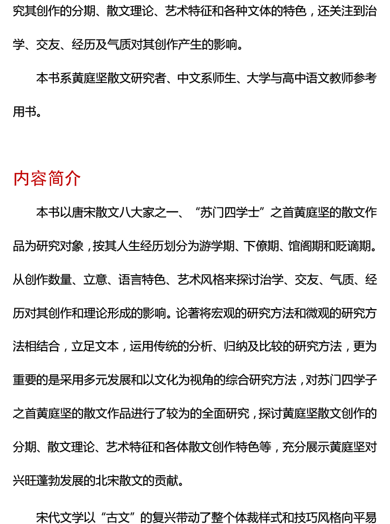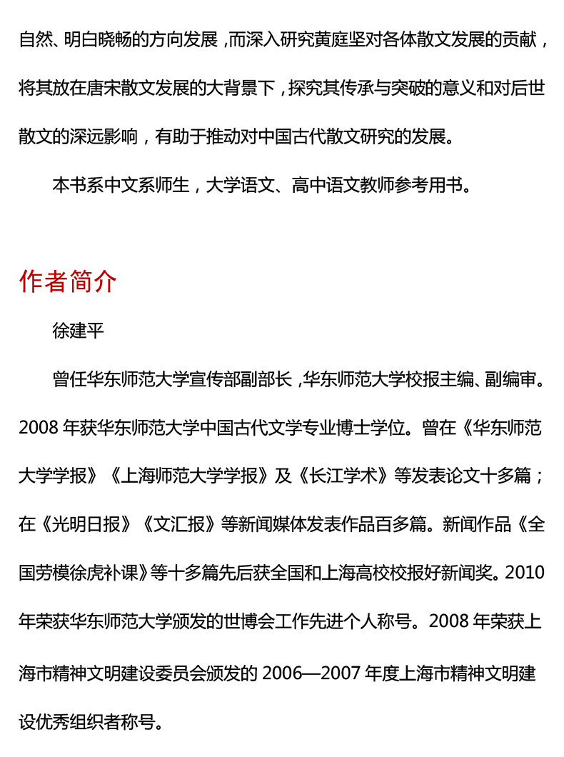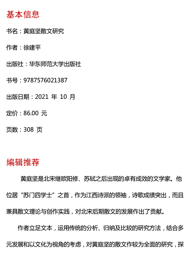 黄庭坚散文研究 徐建平 著 黄庭坚 散文 苏门四学士 江西诗派 北宋 高中语文 参考用书 中文系 正版 华东师范大学出版社