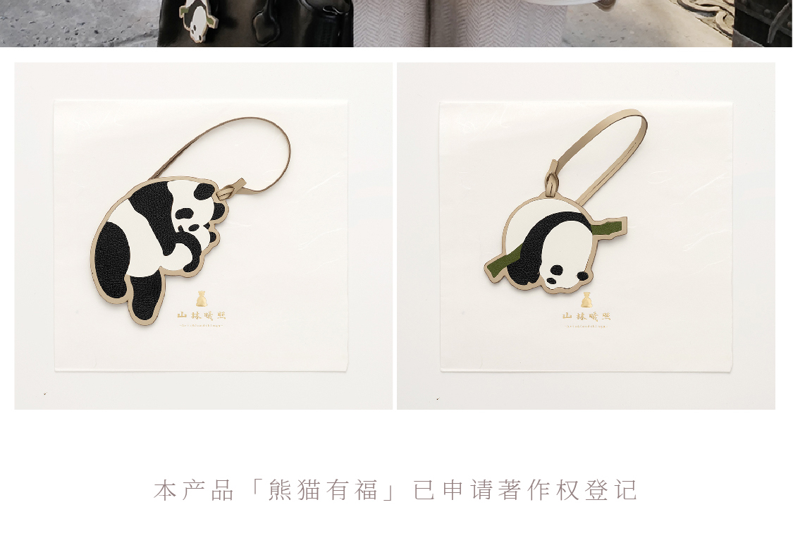 熊猫有福 曦游记成都展限定 柔软皮质挂件 山林曦照
