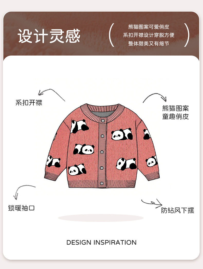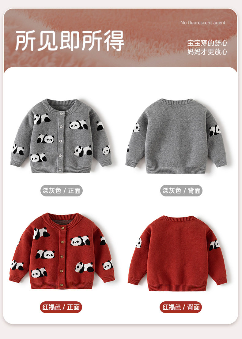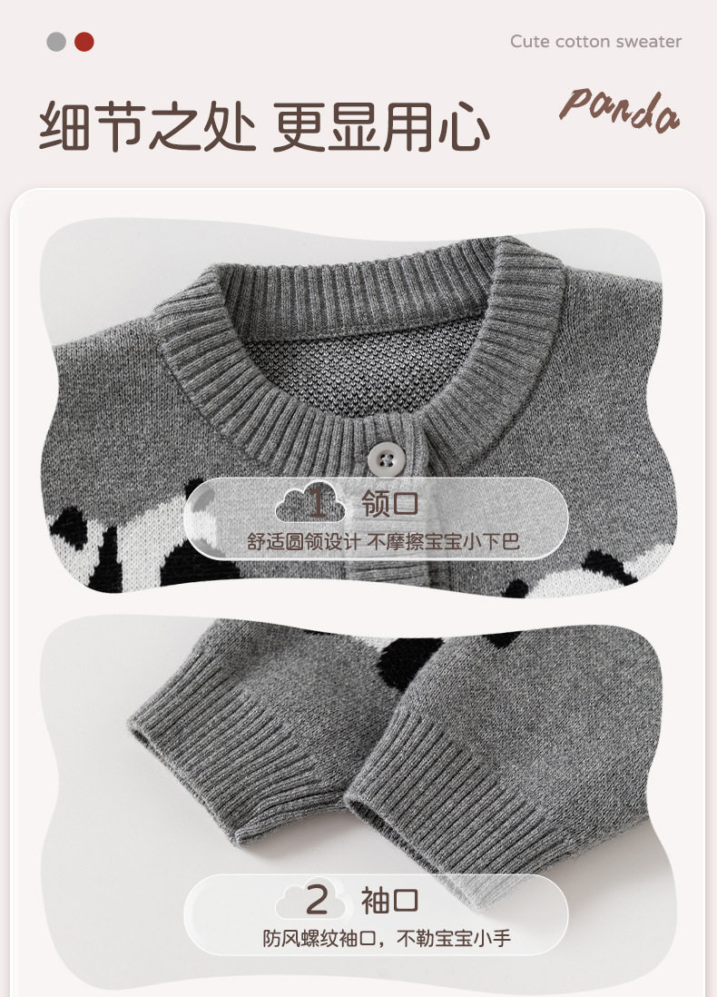 熊猫趴趴加厚针织儿童毛衣纯棉A类婴儿毛衣加绒秋冬宝宝开衫外套