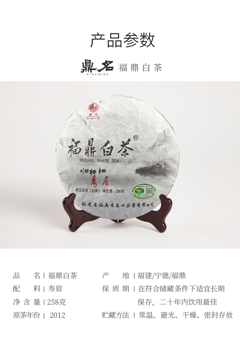 太姥山韵·福鼎白茶饼2012年寿眉258g 成箱规格:6提共42饼
