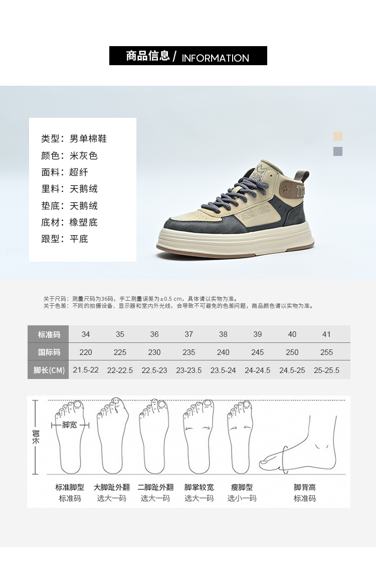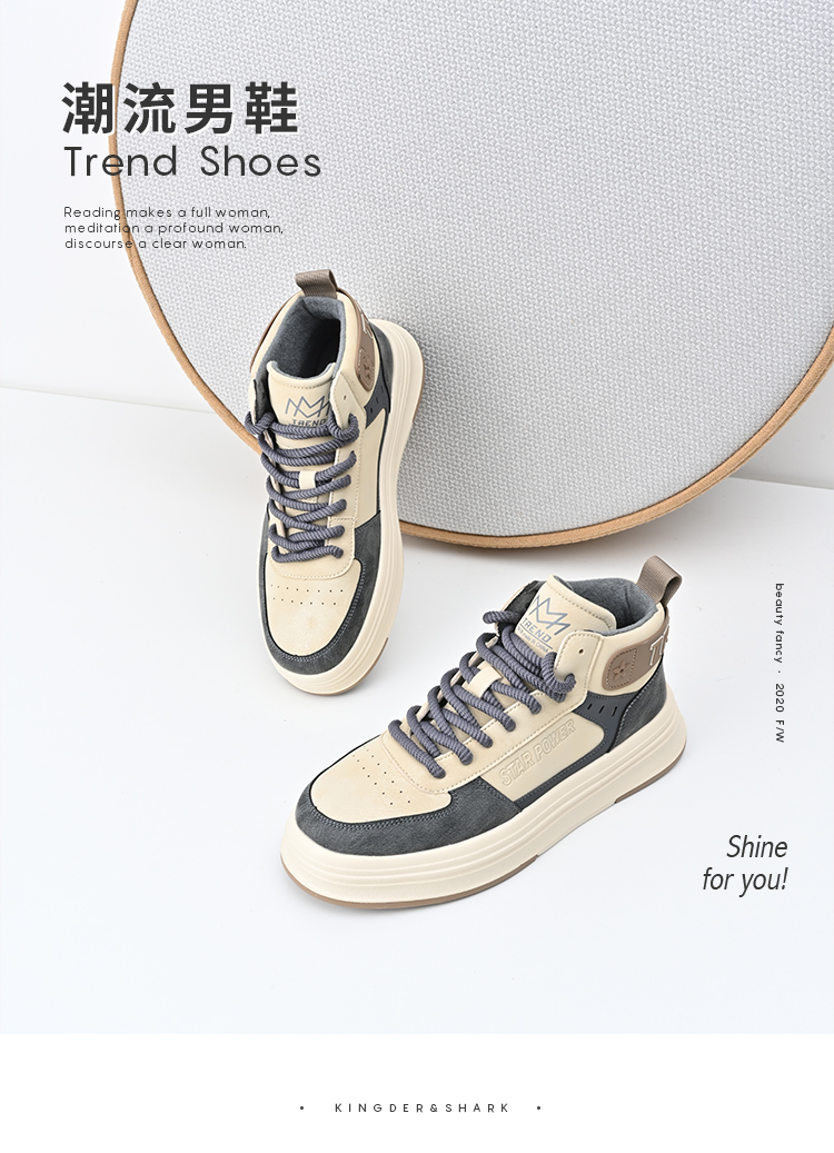 经典鲨2024年冬季新款时尚男士拼色加绒保暖高帮休闲鞋棉鞋KF03-D55091