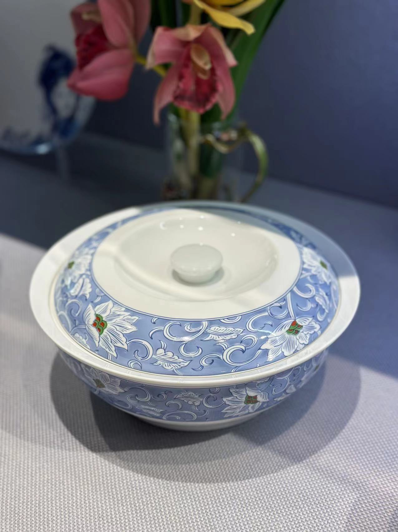 景德镇陶瓷 国瓷红叶 58头蓝锦百合