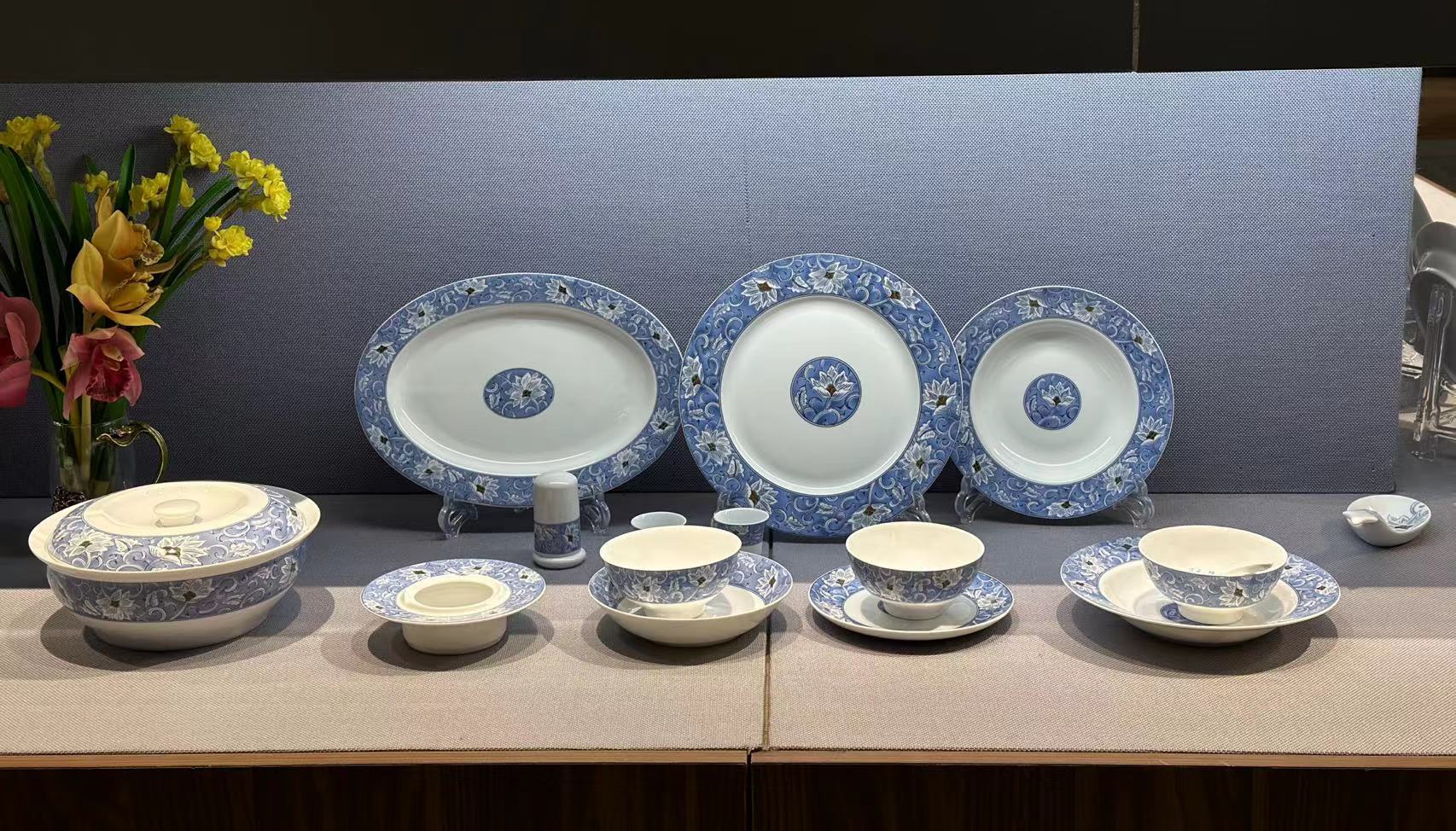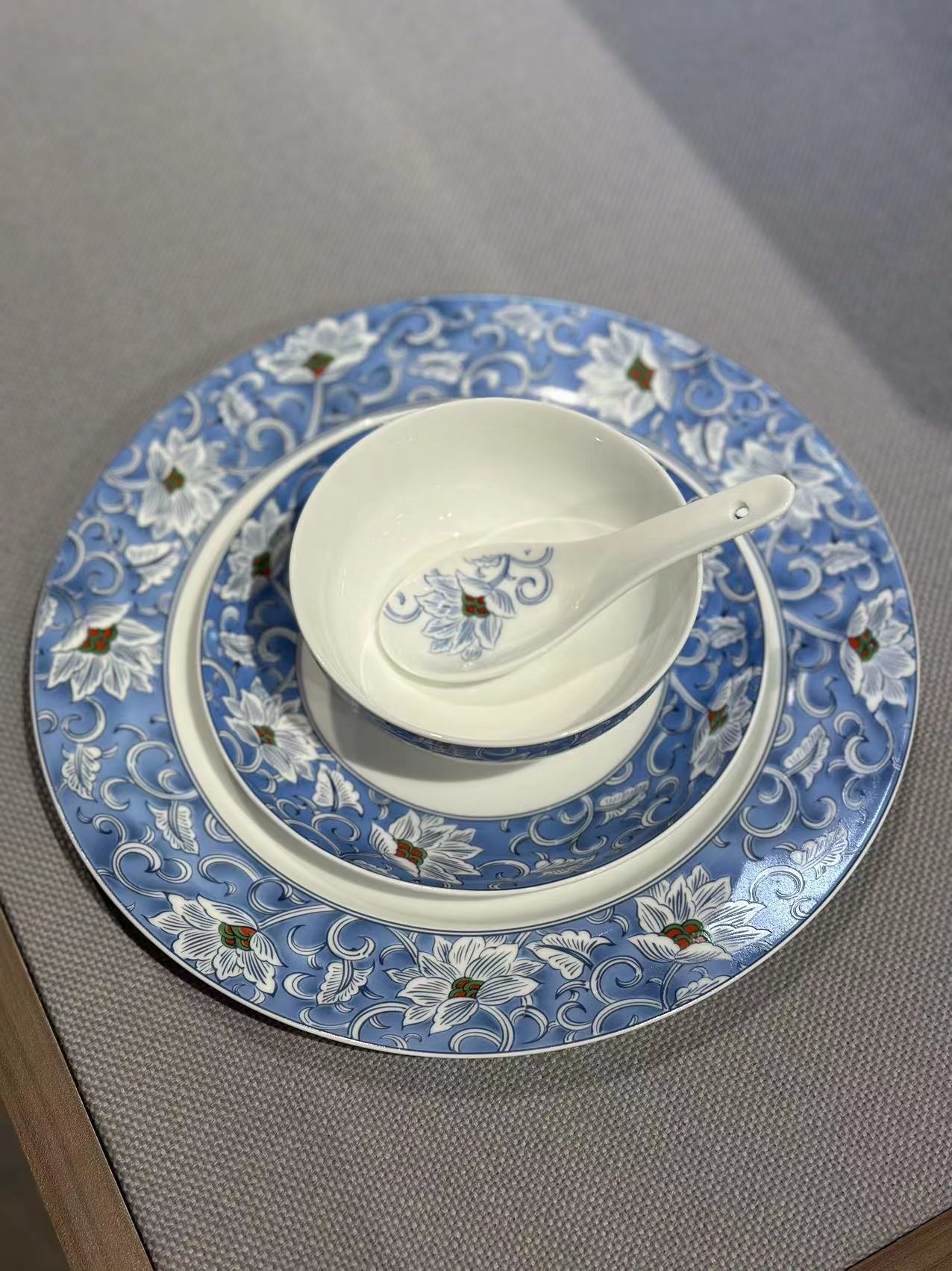 景德镇陶瓷 国瓷红叶 国瓷青花梧桐中餐具