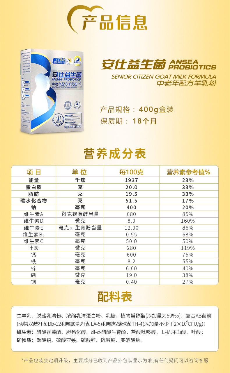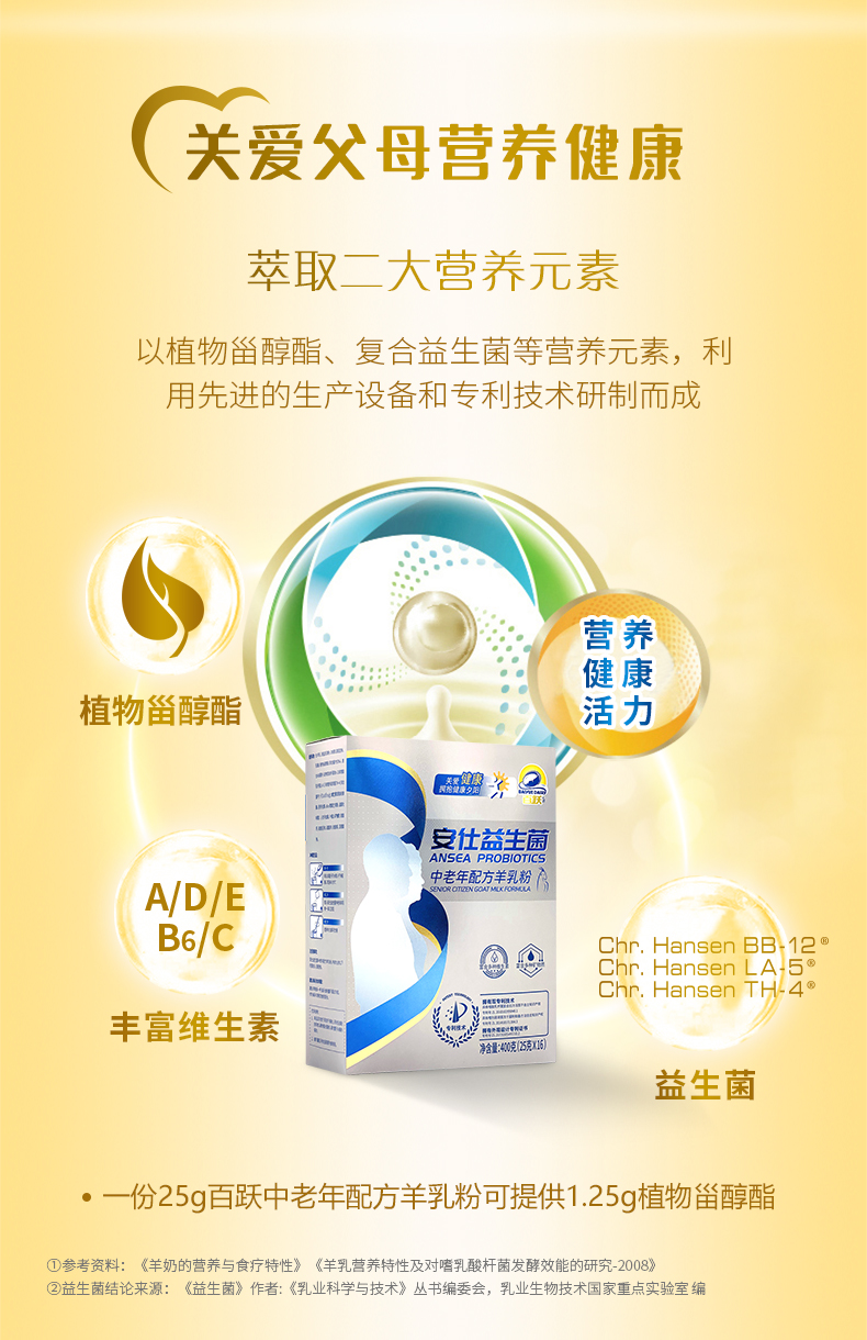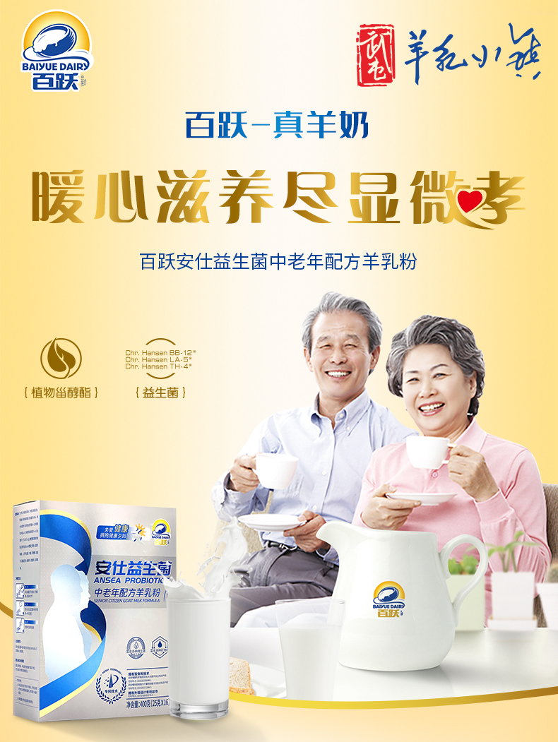 【专利产品】百跃中老年配方羊乳粉安仕益生菌系列400克盒装