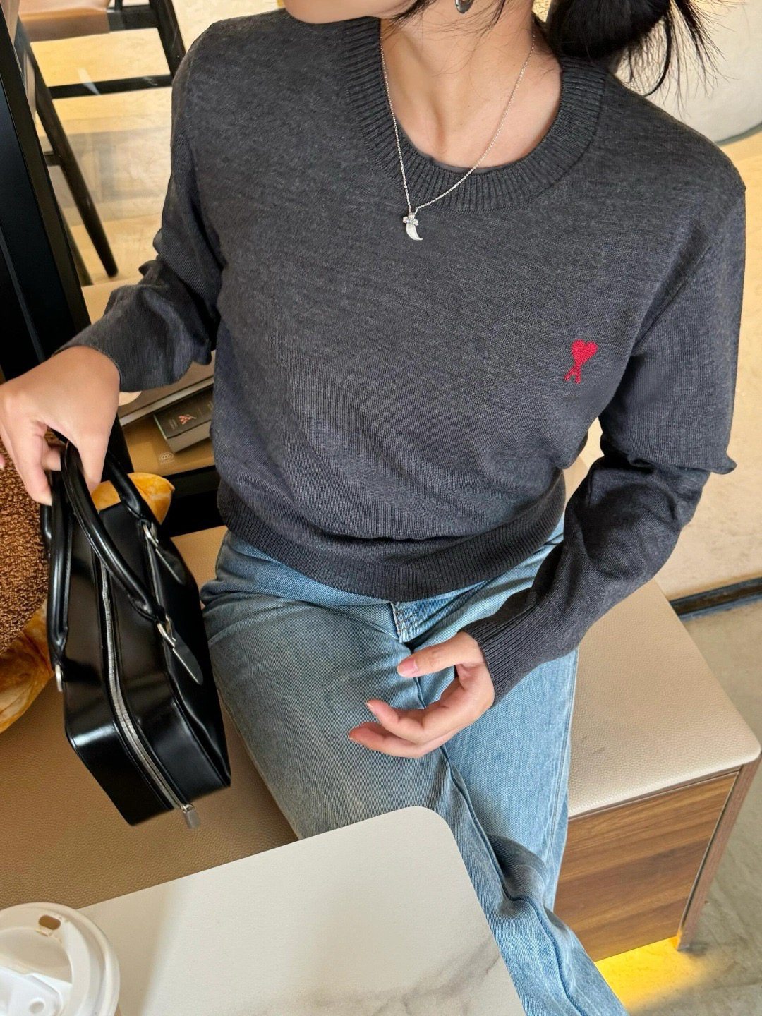 AMI PARIS 经典 爱心刺绣 羊毛针织 毛衣