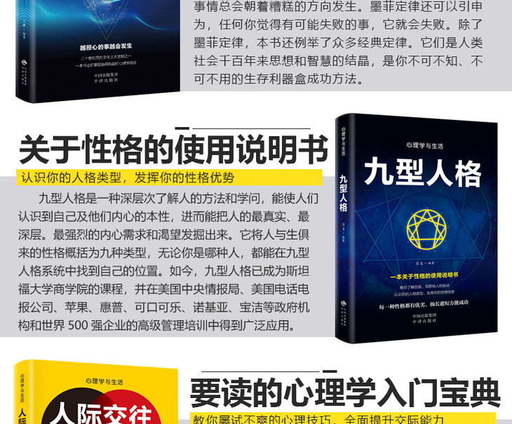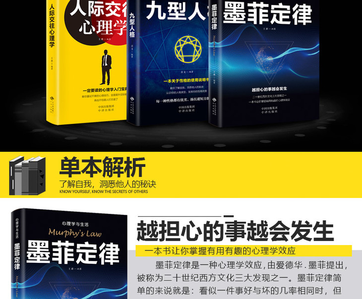 心理学书籍正版全5册墨菲定律自信自强 客服恐惧怯懦人际交往九型人格微表情精准识人生活中的心理学职场行为人际关系生存书籍畅销
