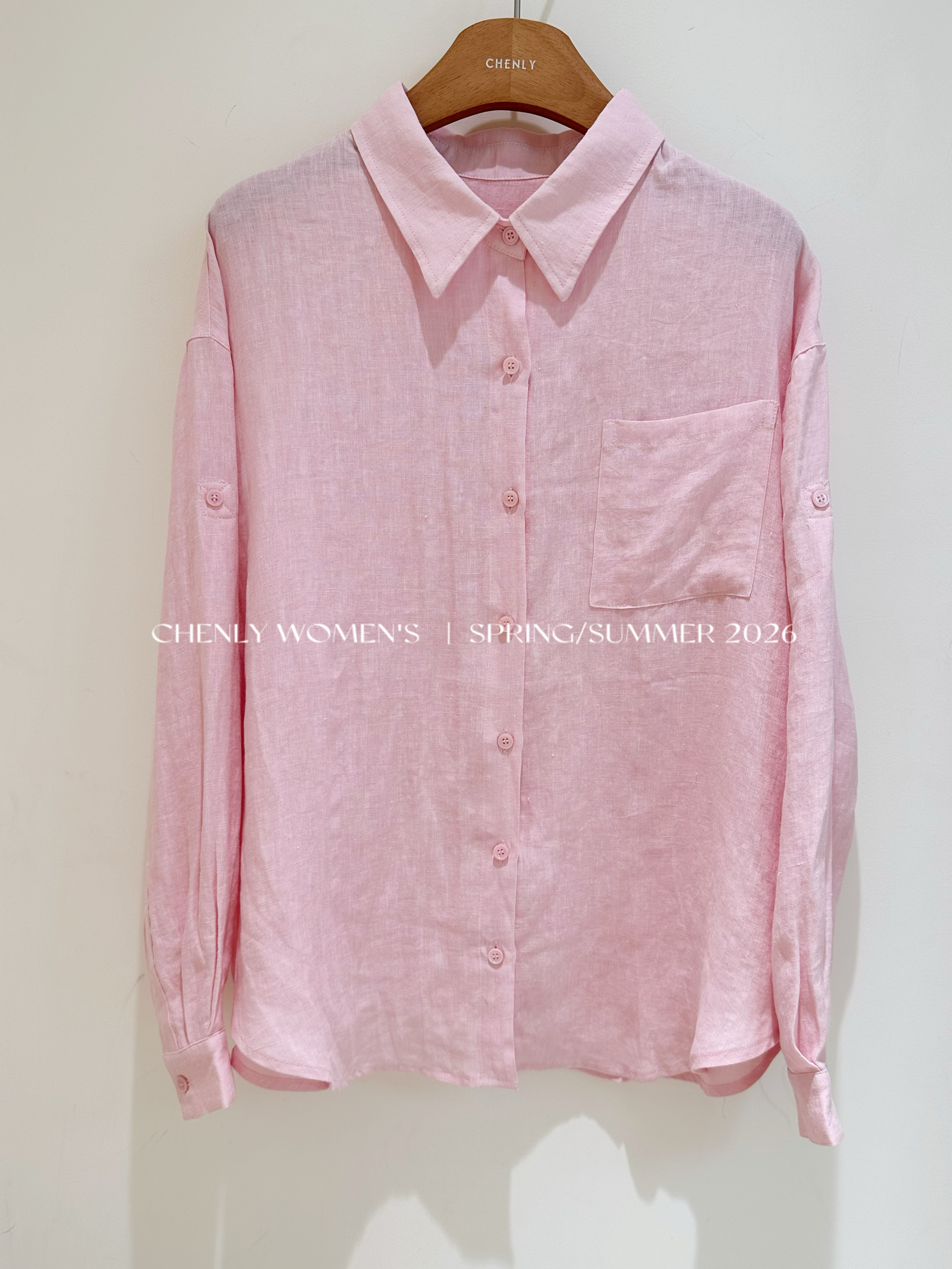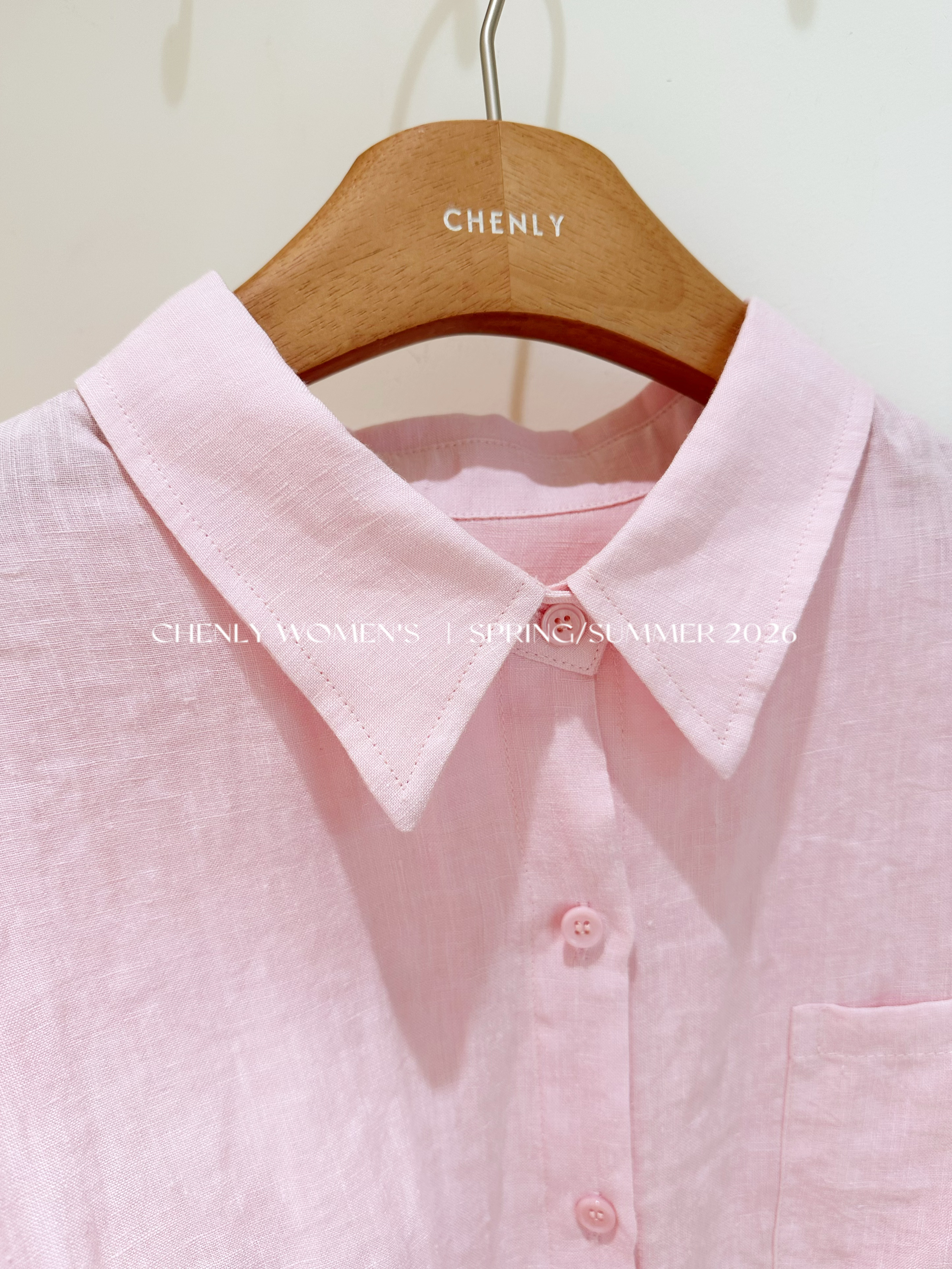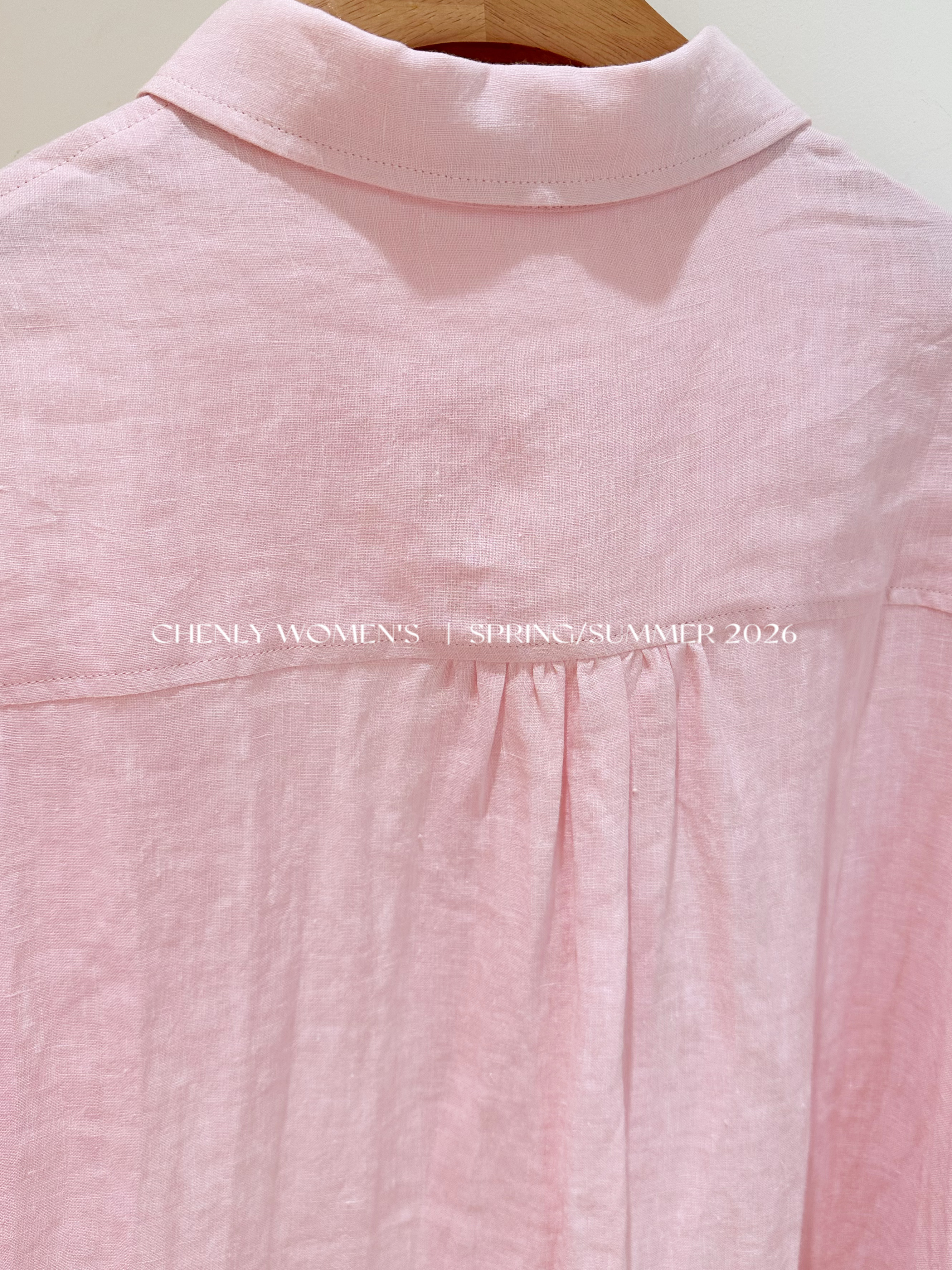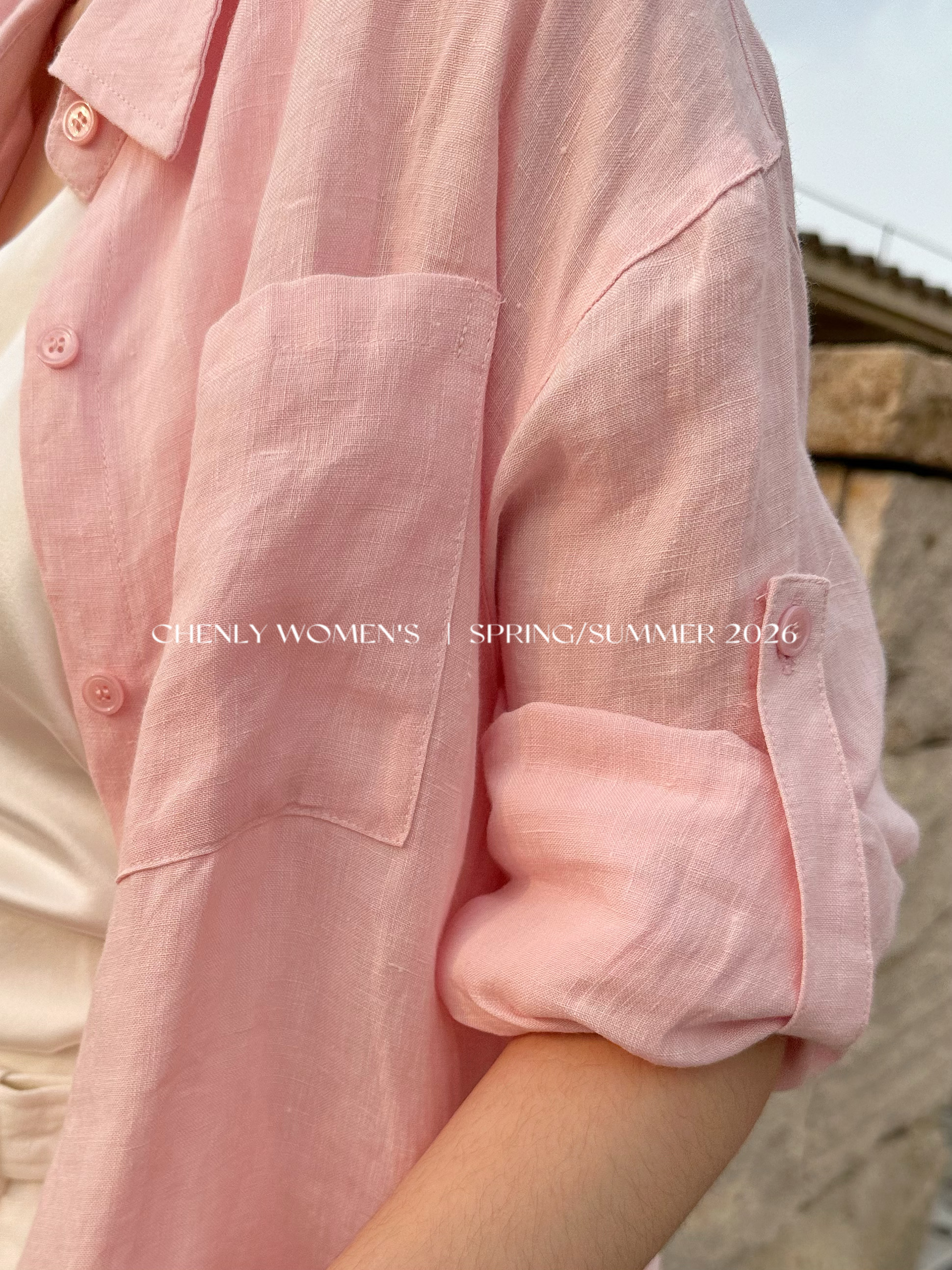 尘衣|26SS浅粉色亚麻口袋衬衫