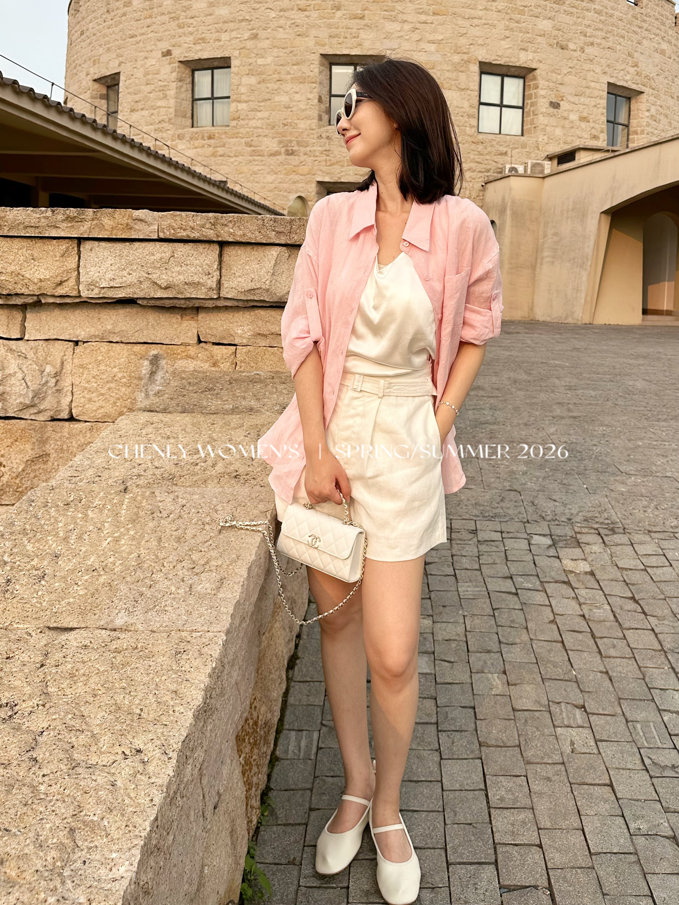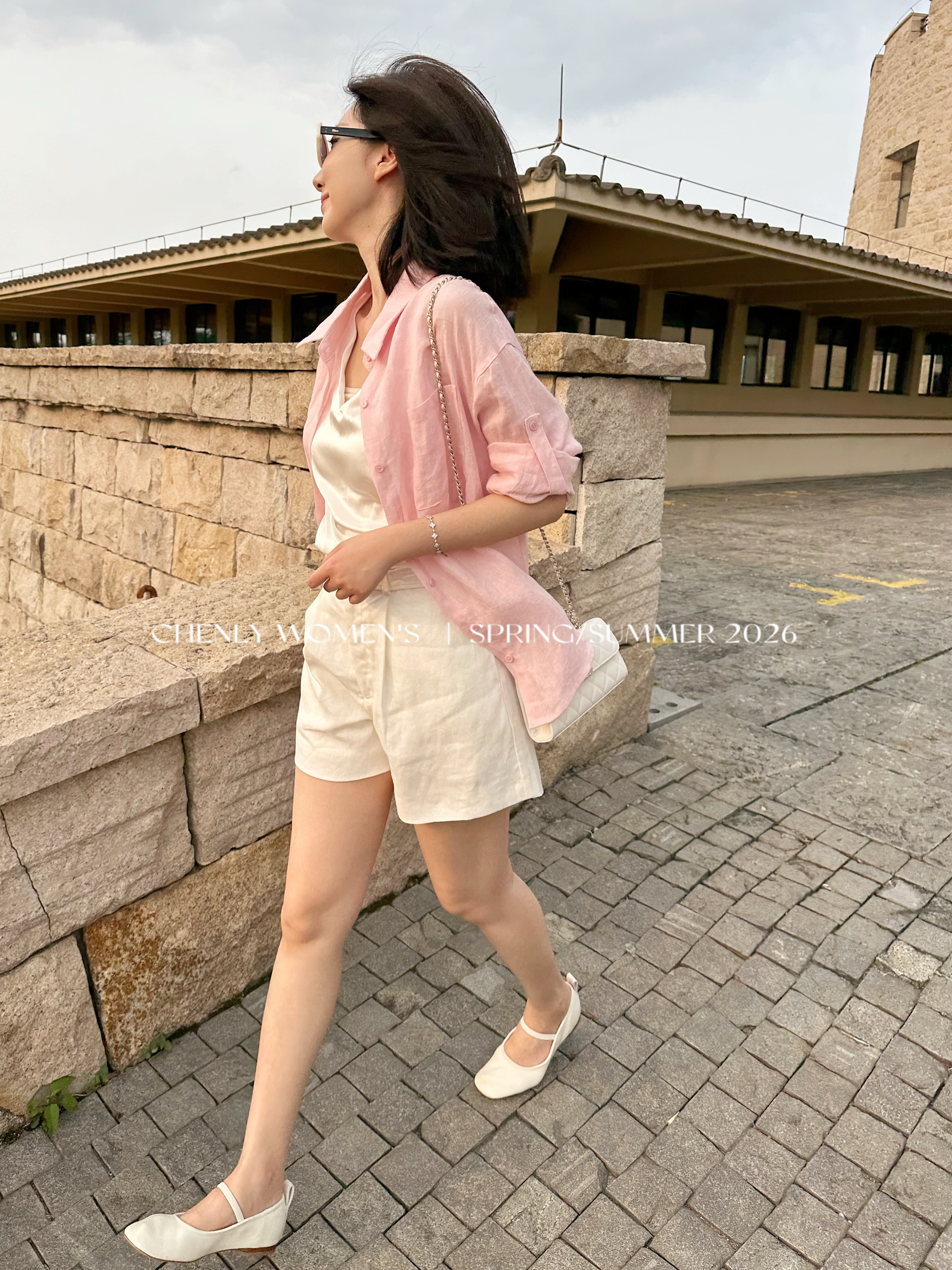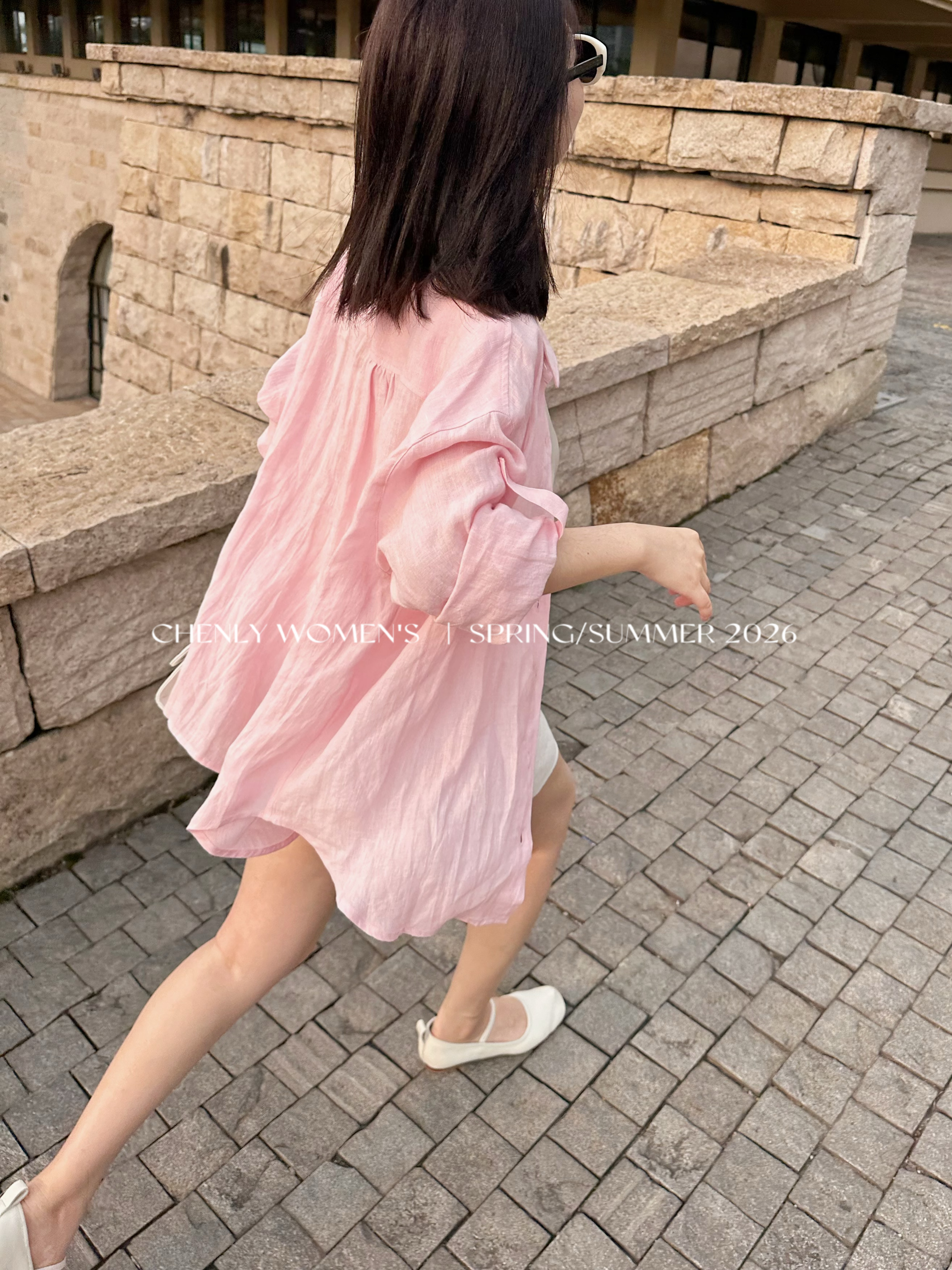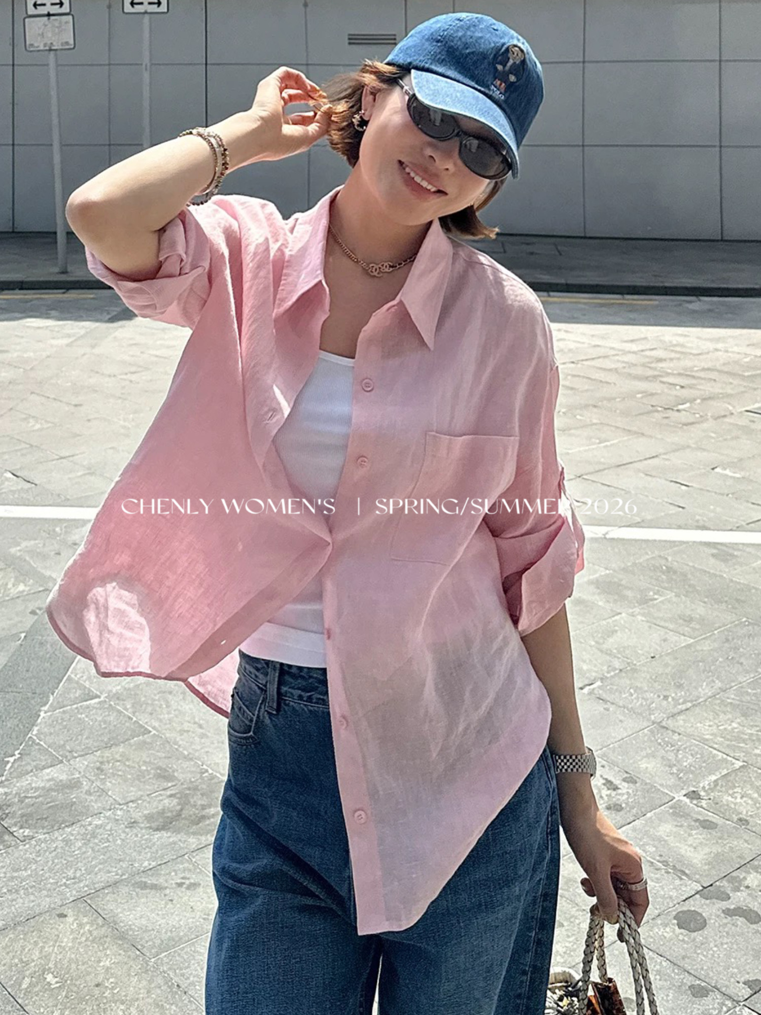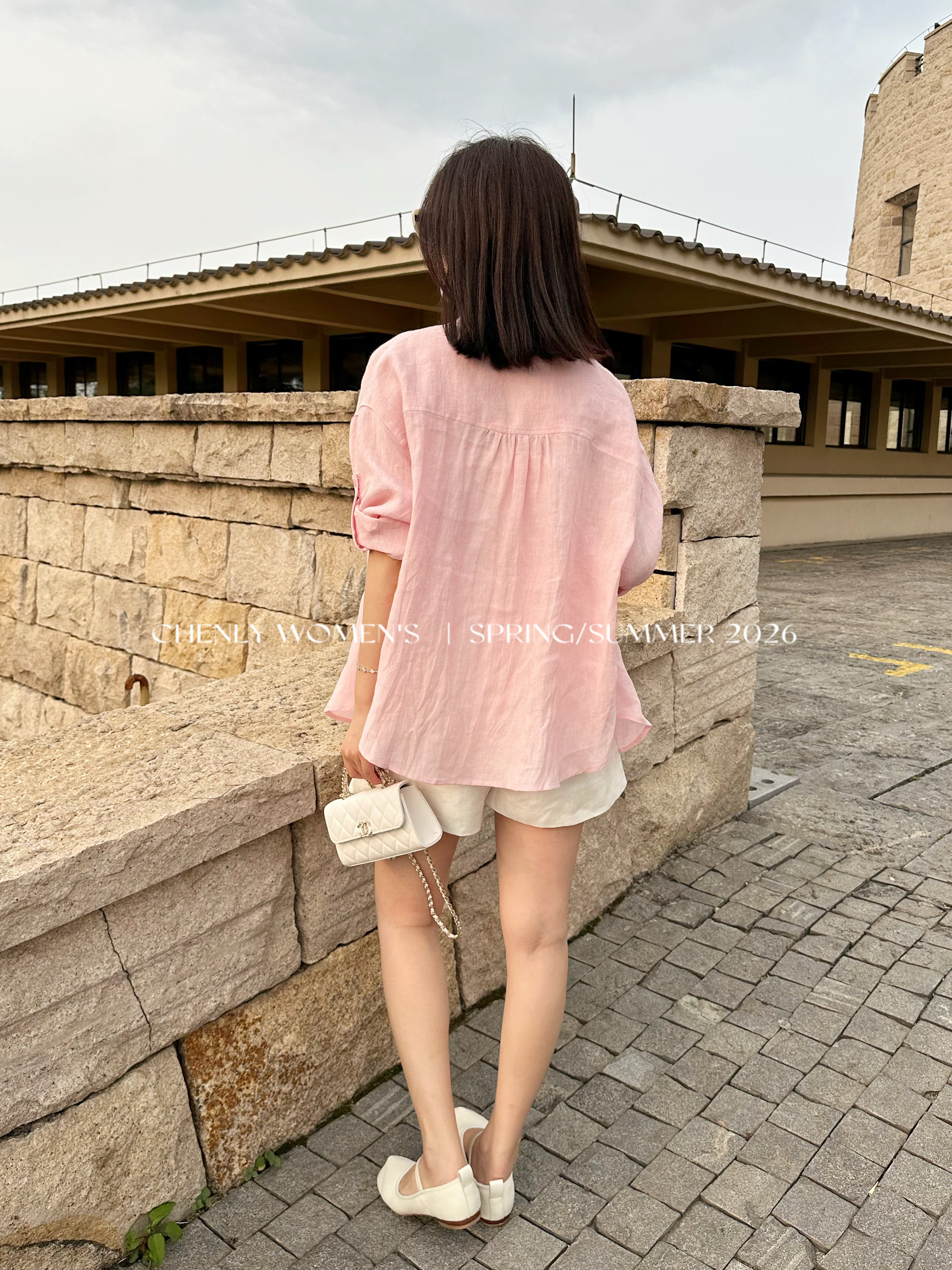 尘衣|26SS浅粉色亚麻口袋衬衫