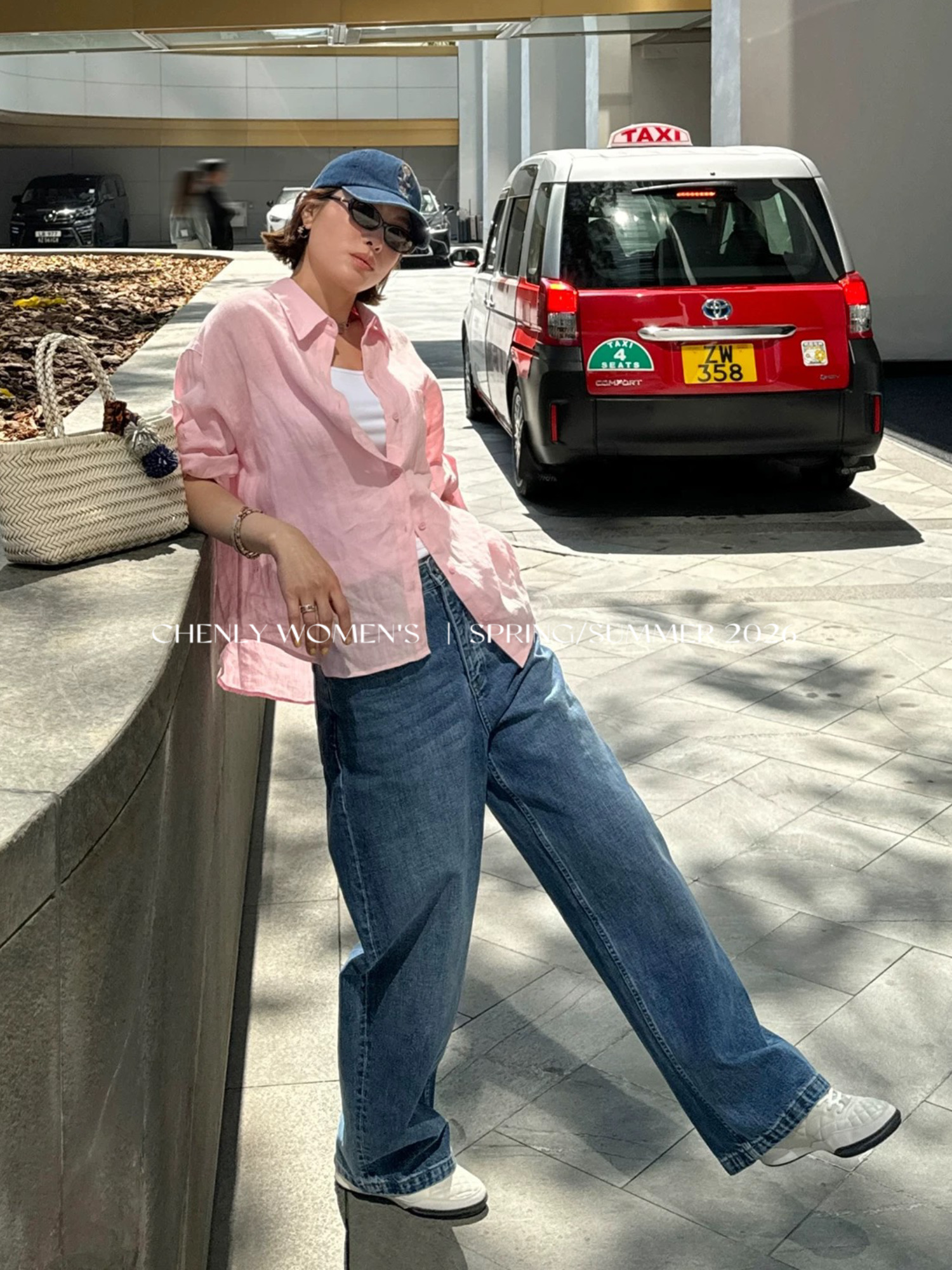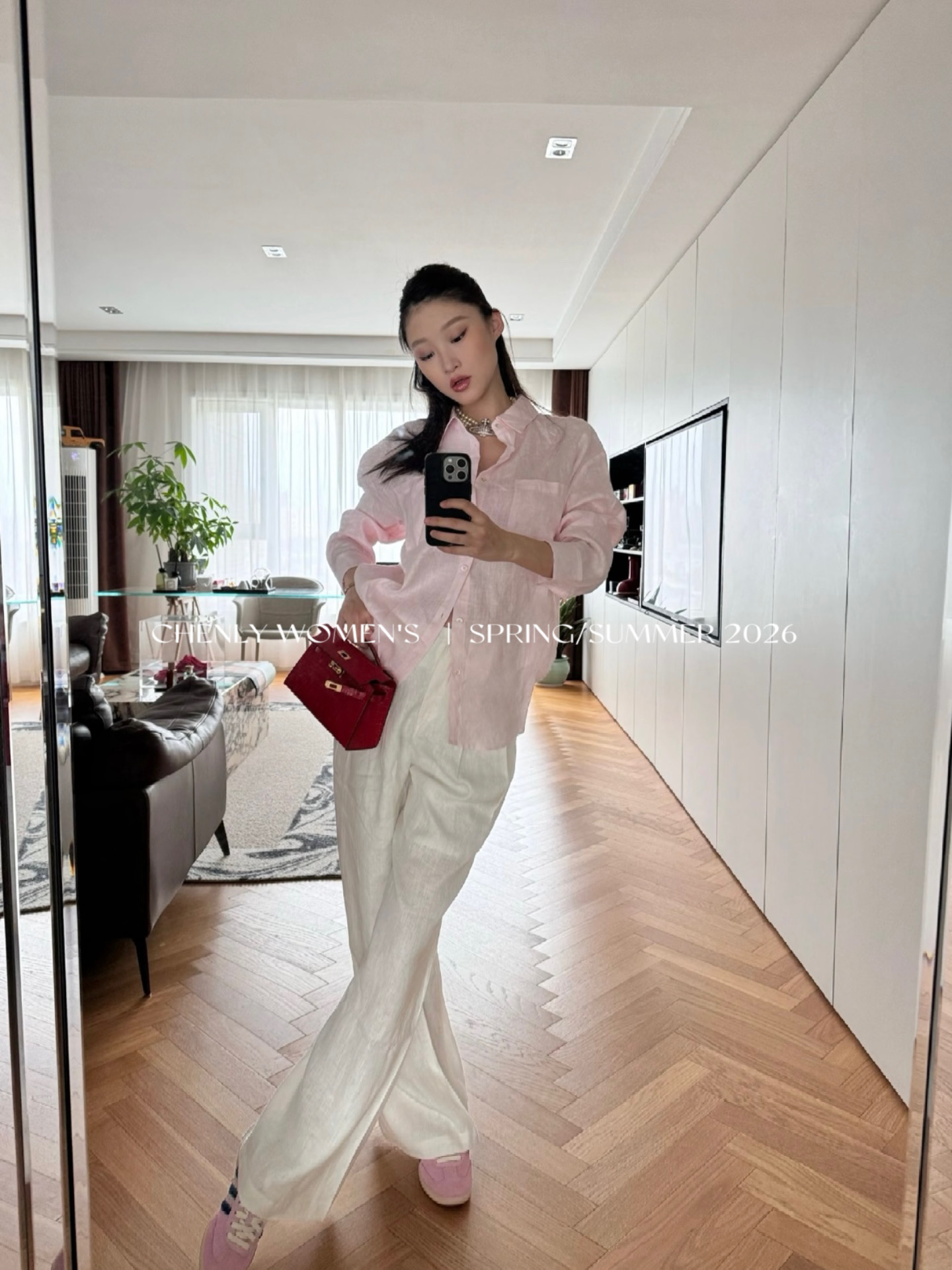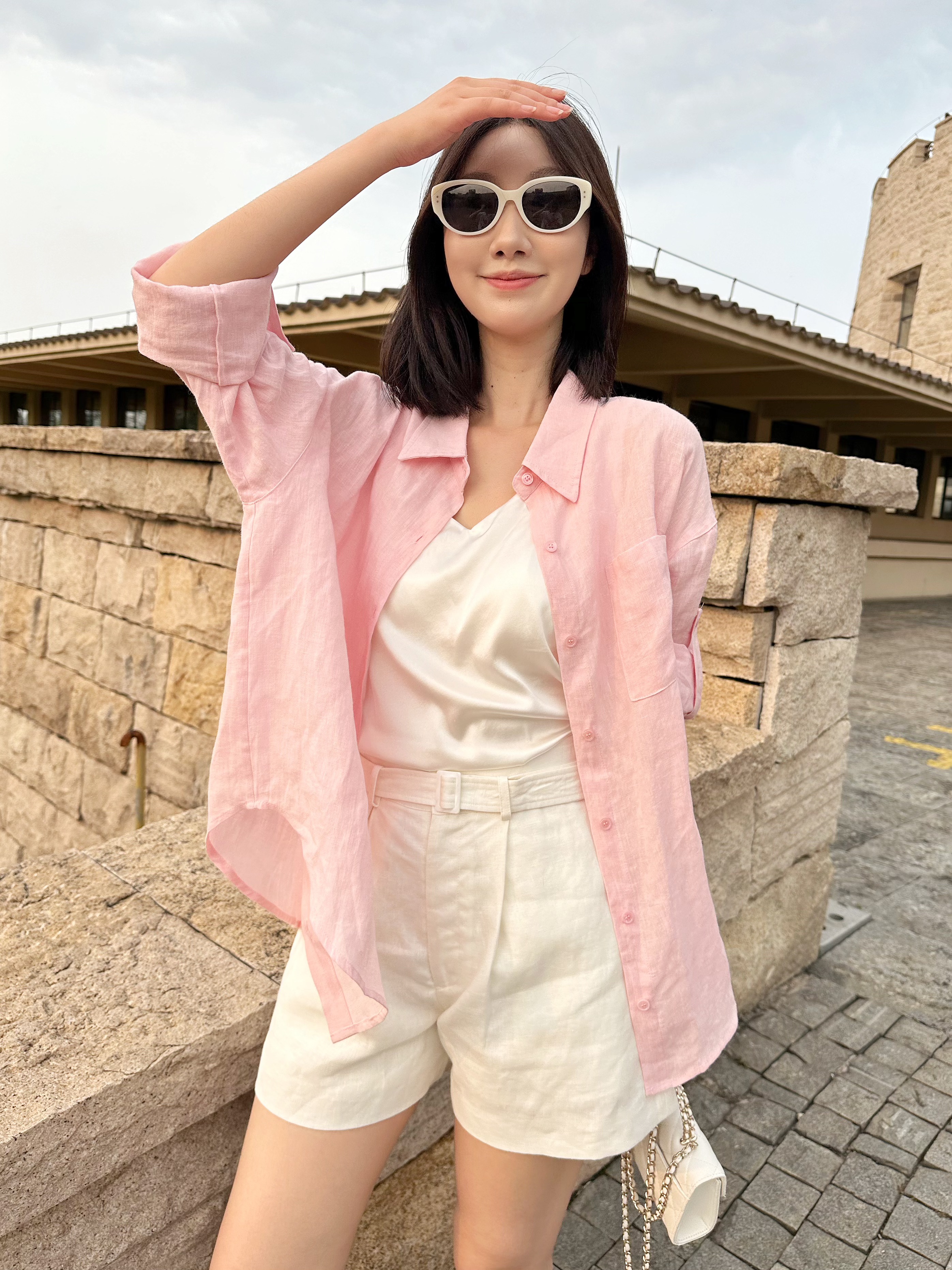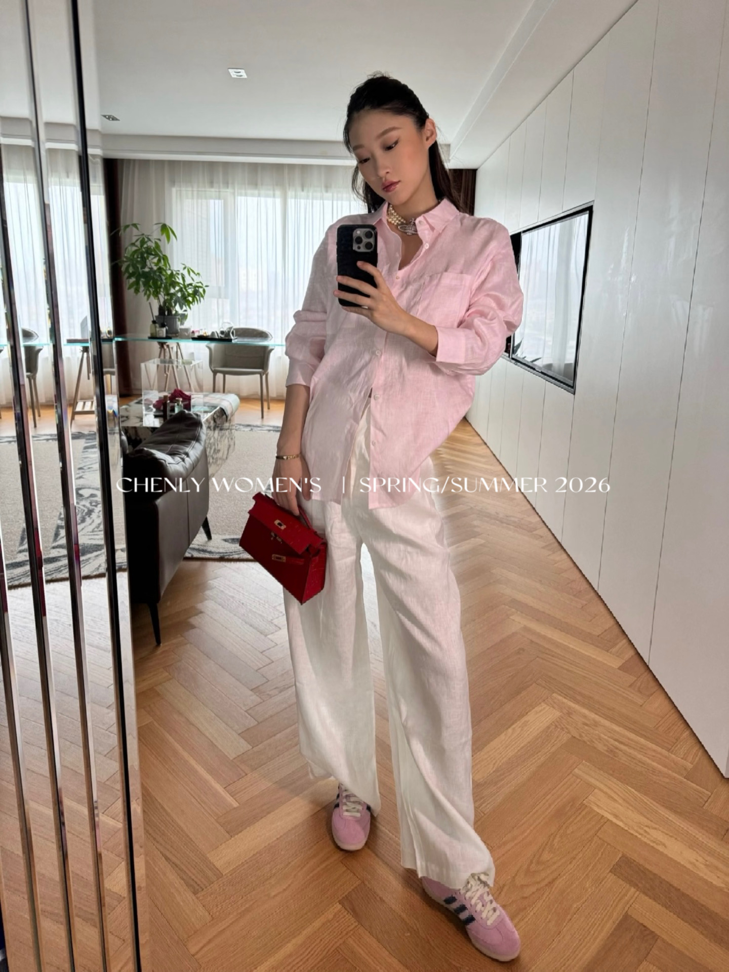 尘衣|26SS浅粉色亚麻口袋衬衫
