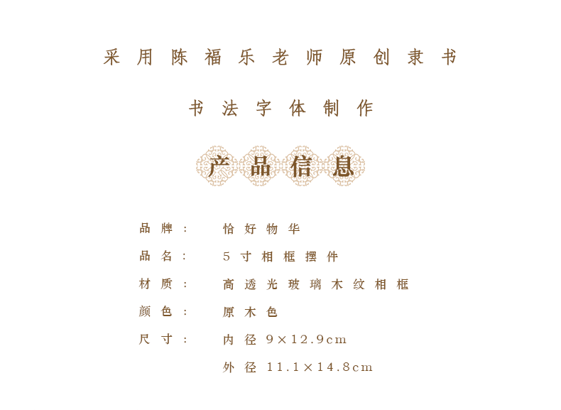 5寸原木色隶书书法摆件 桌面摆台 文化装饰相框