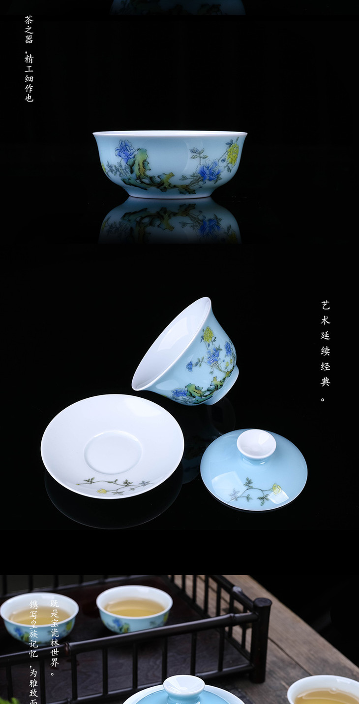 【宝瓷林】天青 豆青 明黄 祭蓝蹲式杯 紫金玉兰杯10头茶具