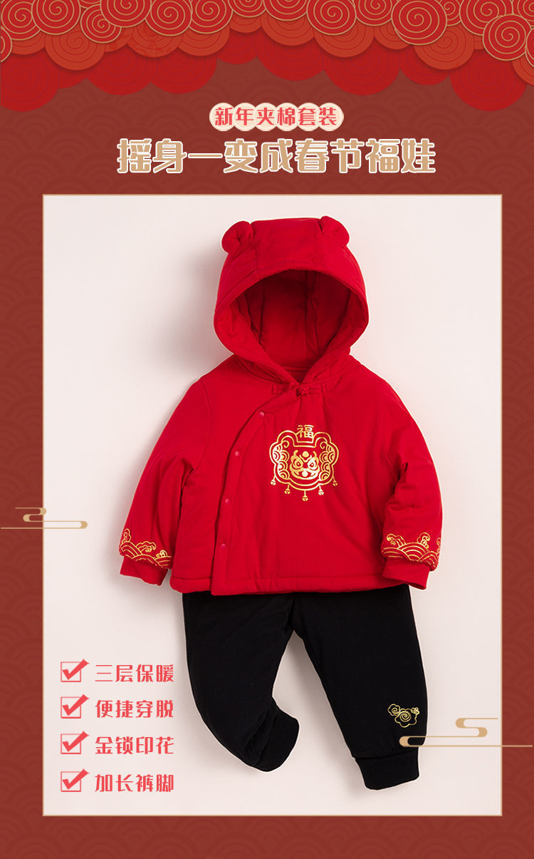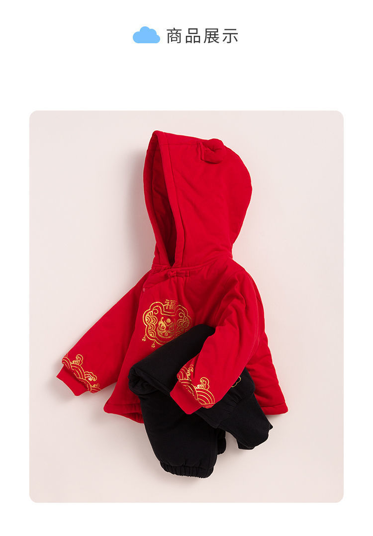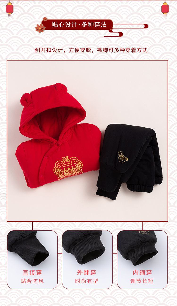 贝贝怡宝宝新年夹棉套装男女宝宝秋冬款长袖中国风儿童喜庆套装214T2357