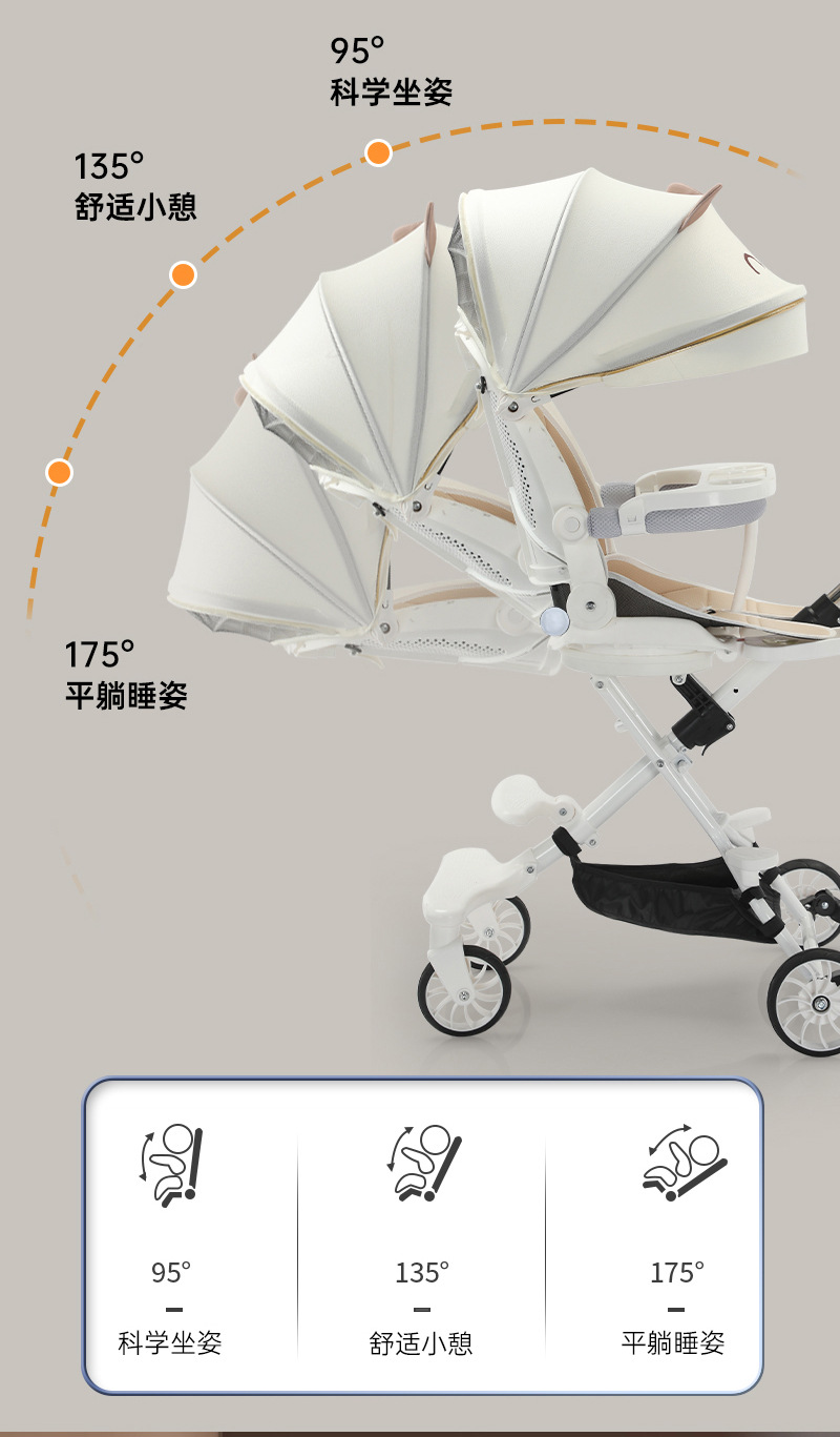 【双向推行 一车用到大!】遛娃神器手推车轻便可坐可躺可折叠0-5岁高景观溜娃神器婴儿车