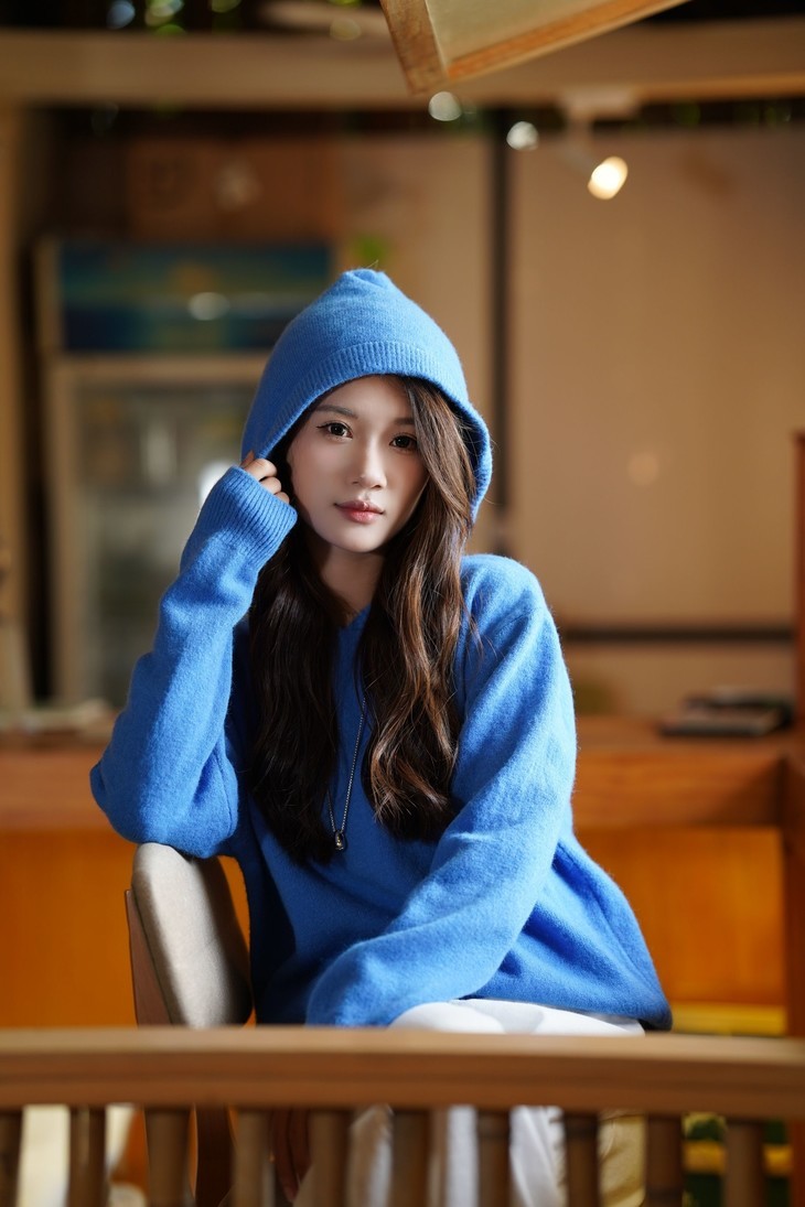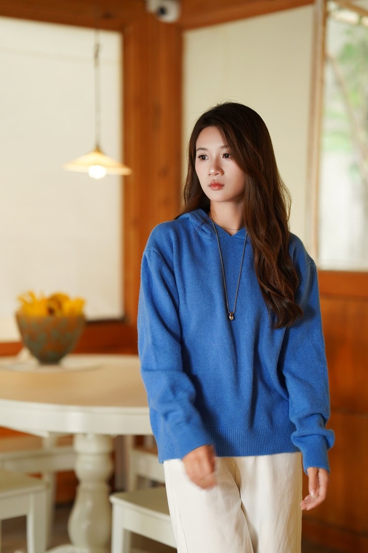 ORIGNAL&CO克莱因蓝连帽针织帽衫