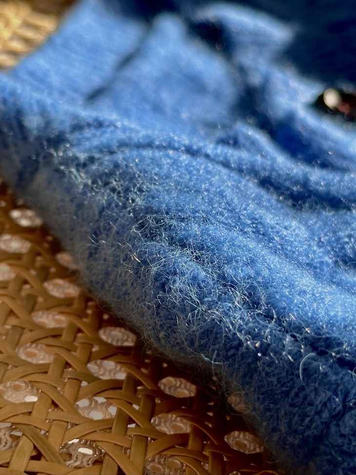 市面上大部分的马海毛毛衣都是稀疏的织法,穿上去松垮不保暖,同时毛又太长很难打理。